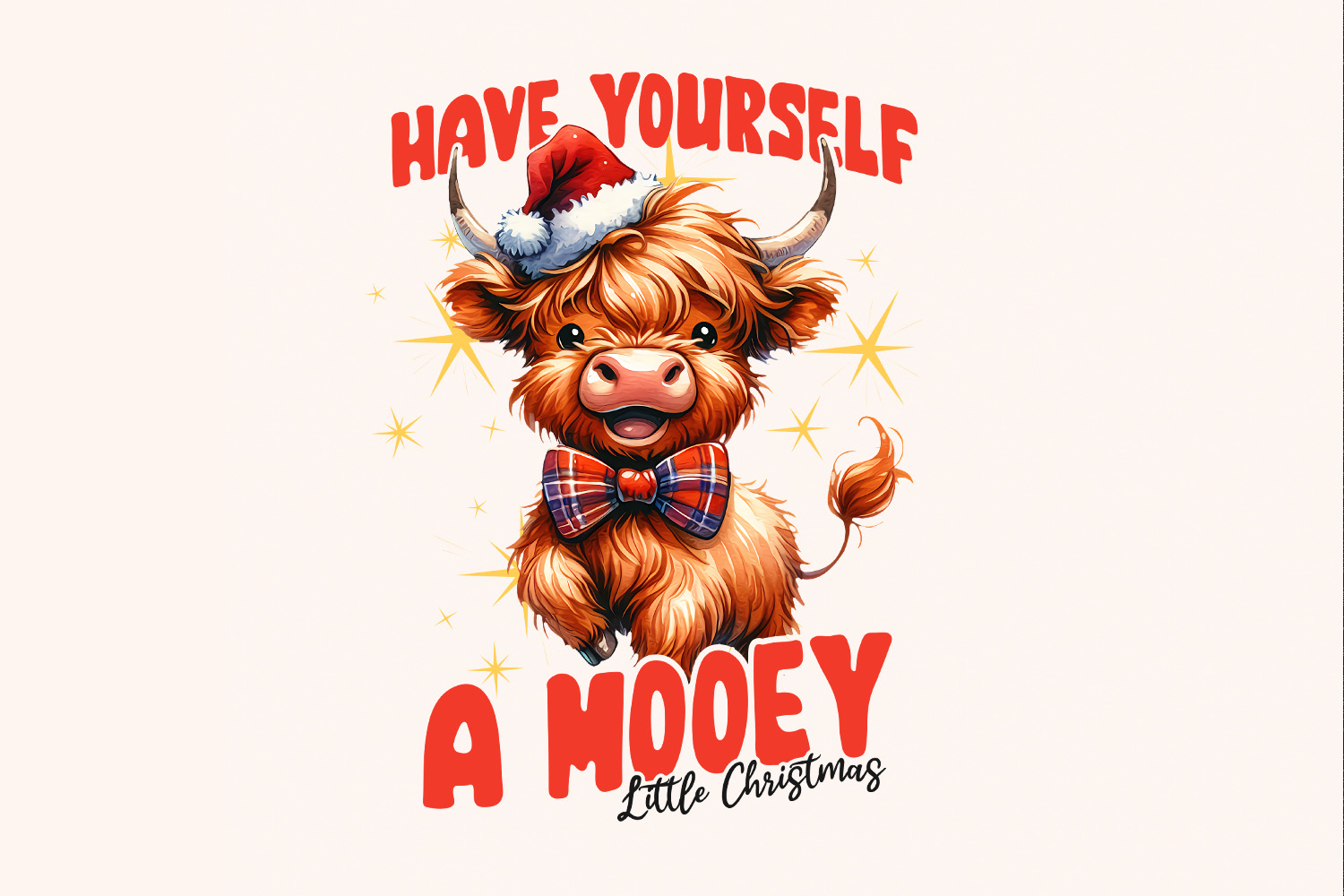 Highland Mooey Christmas PNG, Western Christmas PNG, Coquette Holiday Design, Funny Highland Cow, Illustration