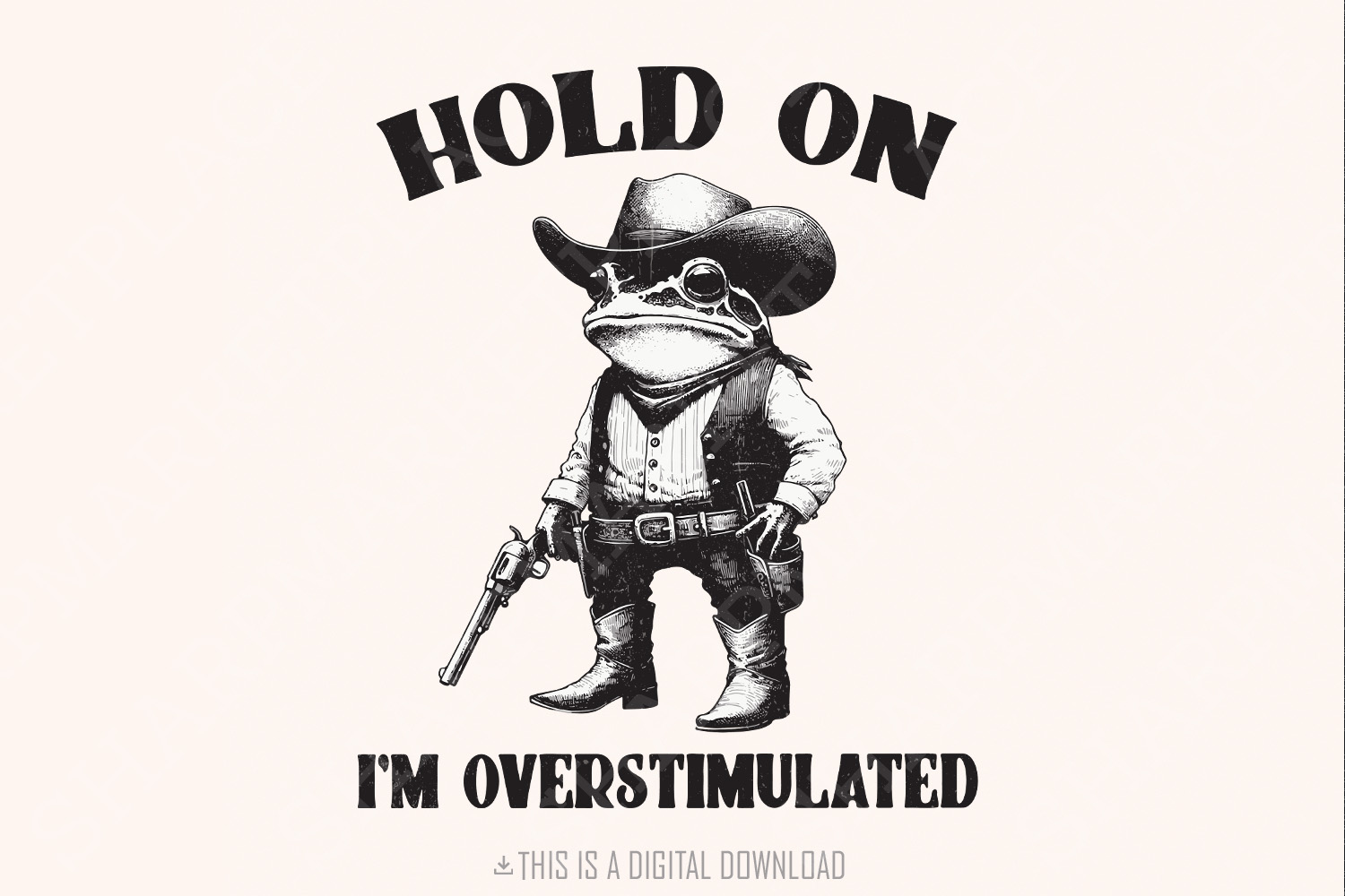 Hold On Partner I'm Overstimulated PNG, Cowboy Frog png, Funny Meme PNG, Trendy png, Overstimulated Illustration