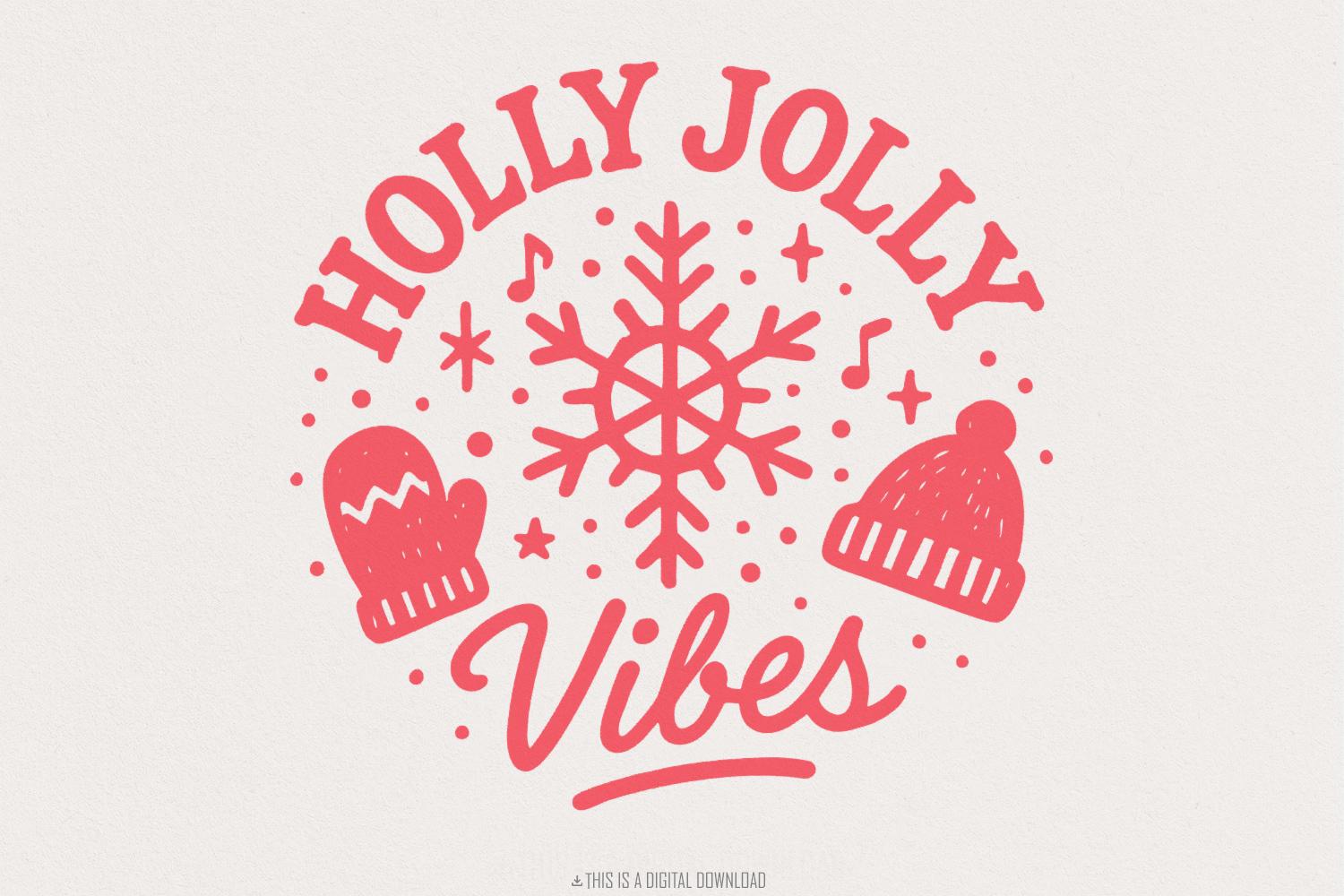 Holly Jolly Vibes PNG, Christmas Shirt PNG, Holiday Sublimation, Festive Winter Snowflake Mitten Illustration