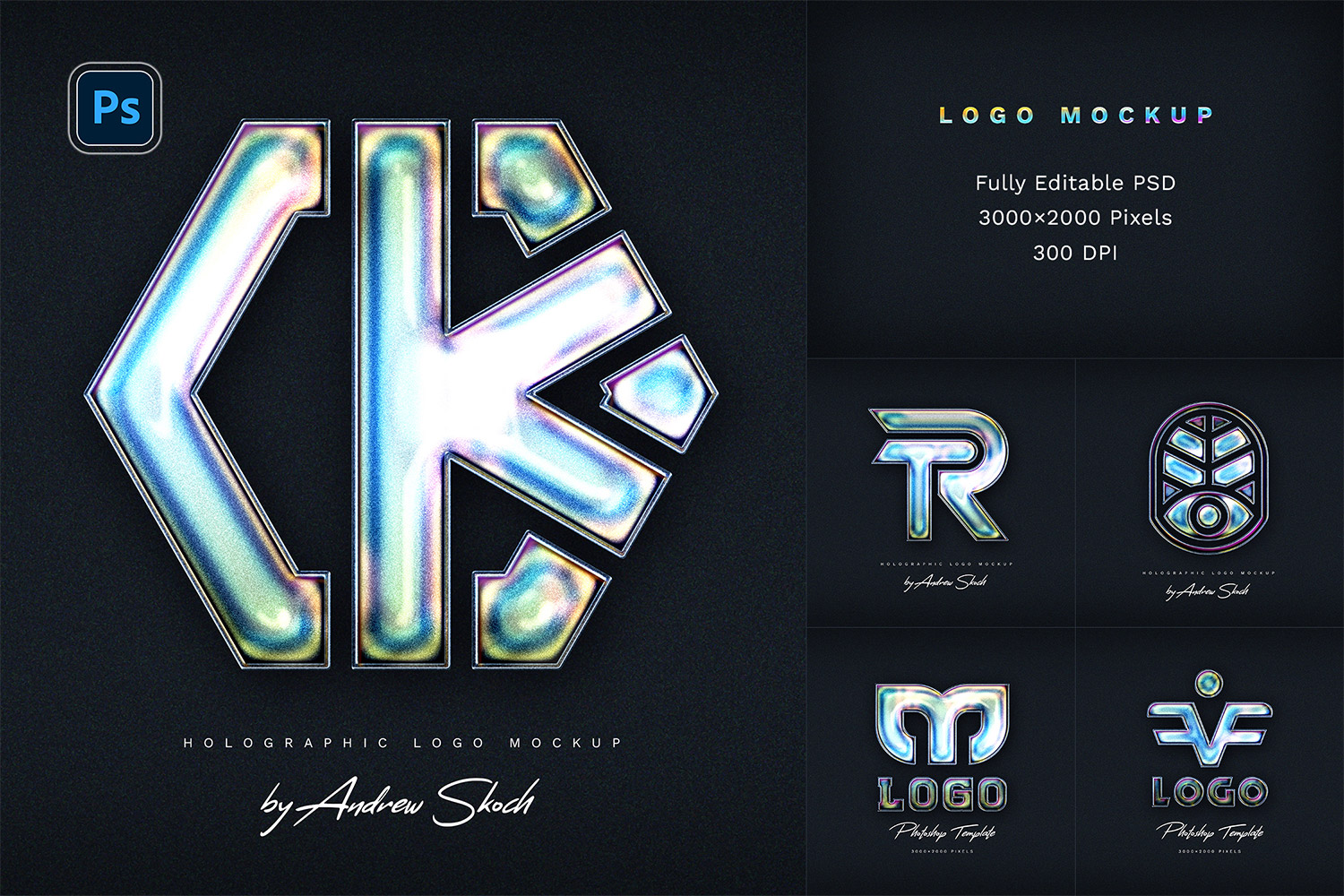 The holographic design trend has been a huge hit for several years. Be trendy with holographic logo effects. It’s an easy way to present your logo in cool shining style.