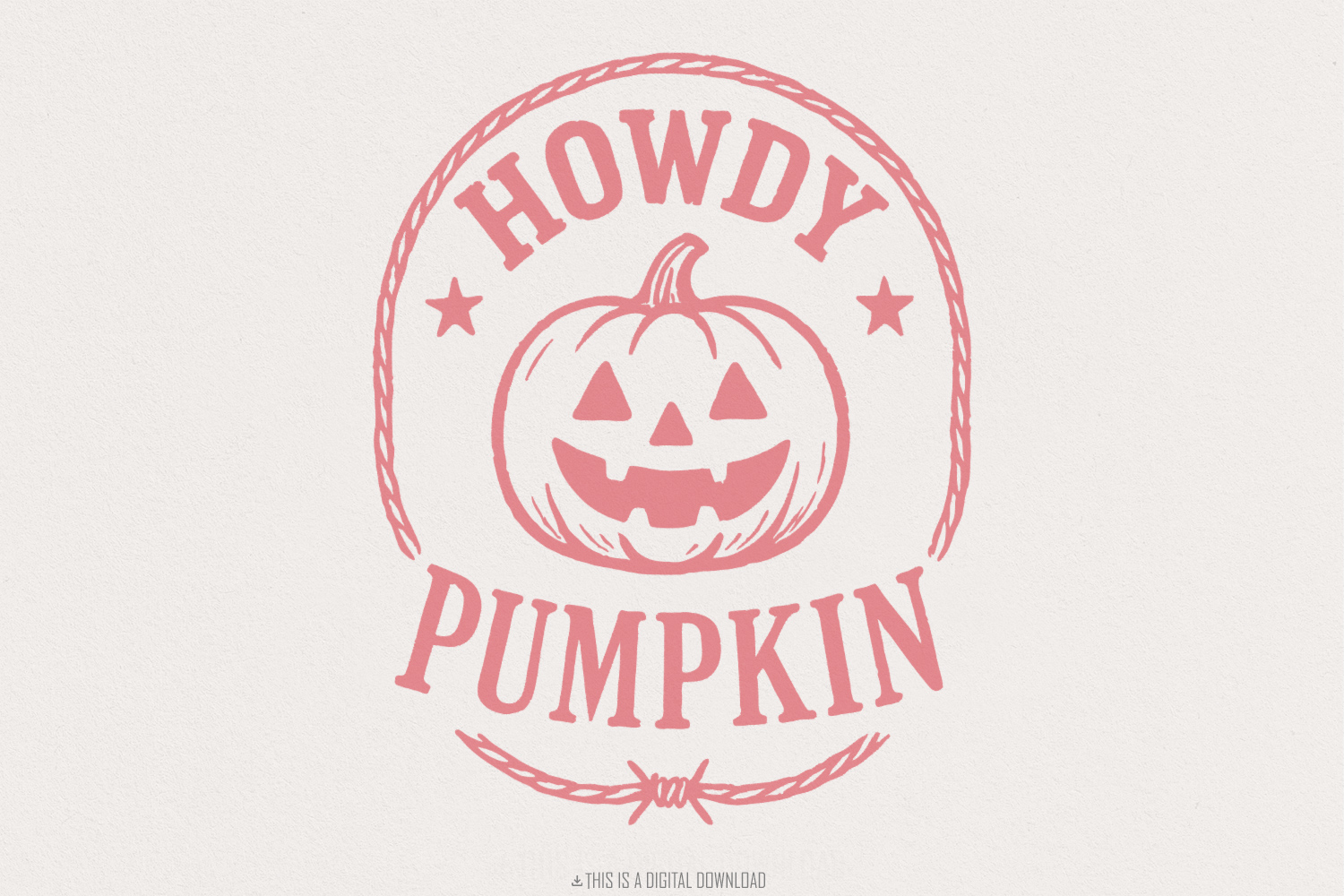 Howdy Pumpkin PNG, Western Fall PNG, Retro Halloween, Trendy Pumpkin PNG Download, Autumn Sublimation, Cute Jack O Lantern, Pink Halloween PNG