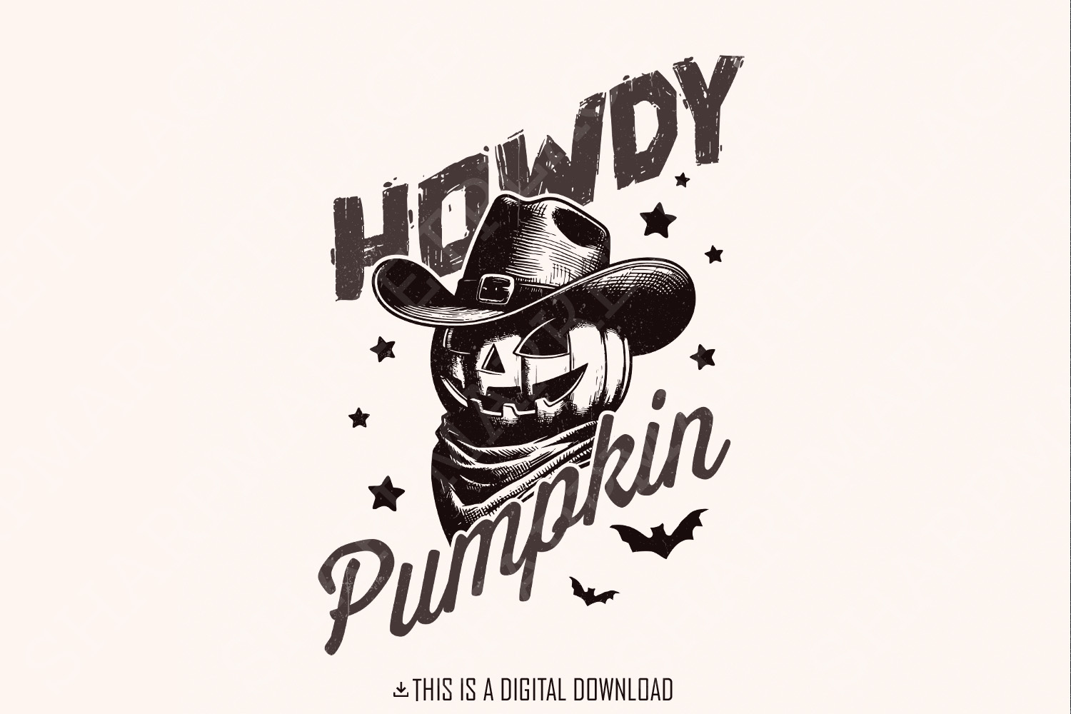 Howdy Pumpkin Western Fall PNG, Retro Halloween, Autumn Sublimation, Trendy Fall Pumpkin PNG, Illustration