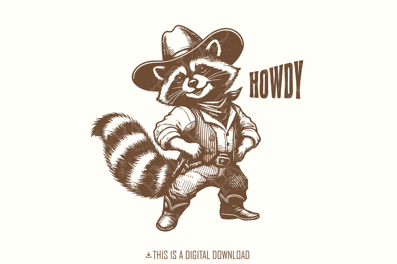 Howdy Raccoon Png, Western Saying, Country Raccoon png, Cute Shirt Design, Retro Vintage Shirt, Illustration