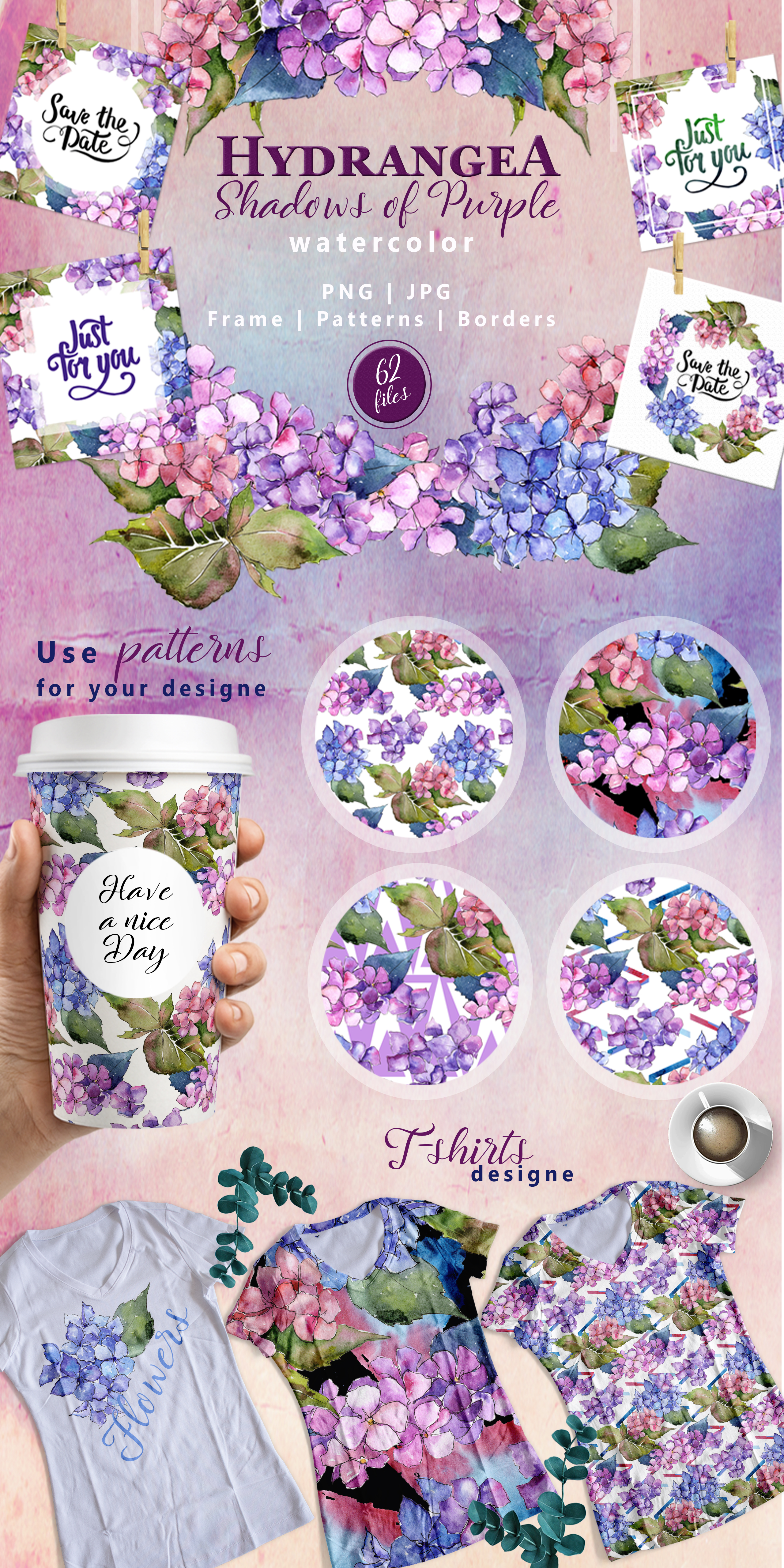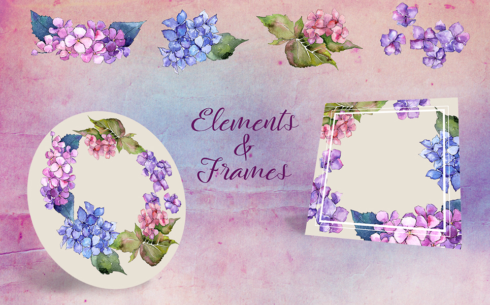 Hydrangea PNG Watercolor Flower Set - Illustration