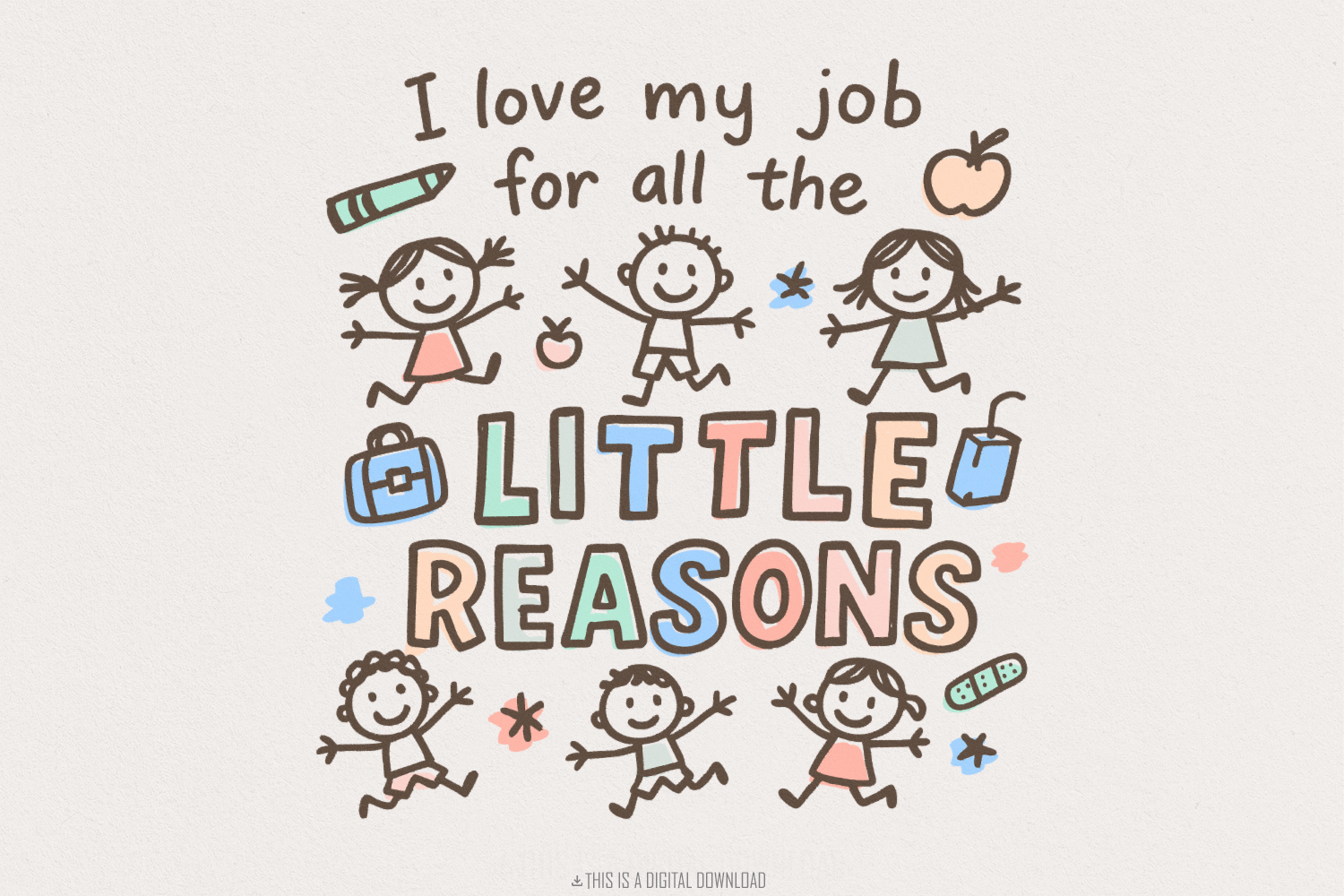 I Love My Job For All The Little Reasons Png, Cute Teacher Appreciation Png Shirt Design, Kids School Classroom Quote, Instant Digital Png