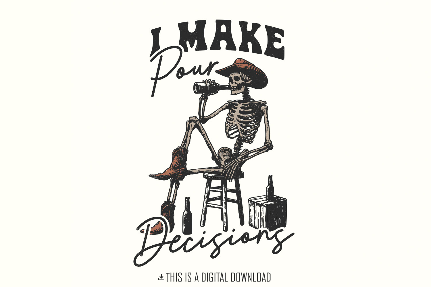 I make Pour Decisions PNG, Vintage Art, Retro Graphic, Sublimation Designs, Western png for Tshirts, Digital Downloads, Skeleton Meme