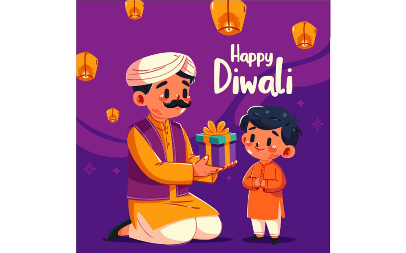 **This vibrant illustration captures the joyous spirit of the Hindu Diwali festival, showcasing a heartwarming moment between a father and son. The image reflects the essence of familial bonds and the celebration of light, symbolizing hope and prosperity. With colorful decorations and traditional elements, it embodies the festive atmosphere of Diwali, making it a perfect representation of love and togetherness during this auspicious occasion**