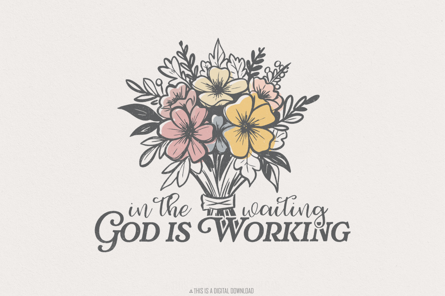 In the Waiting God is Working PNG, Floral Christian PNG, Bible Verse Digital Download, Vintage Christian Sublimation, Wildflower Art