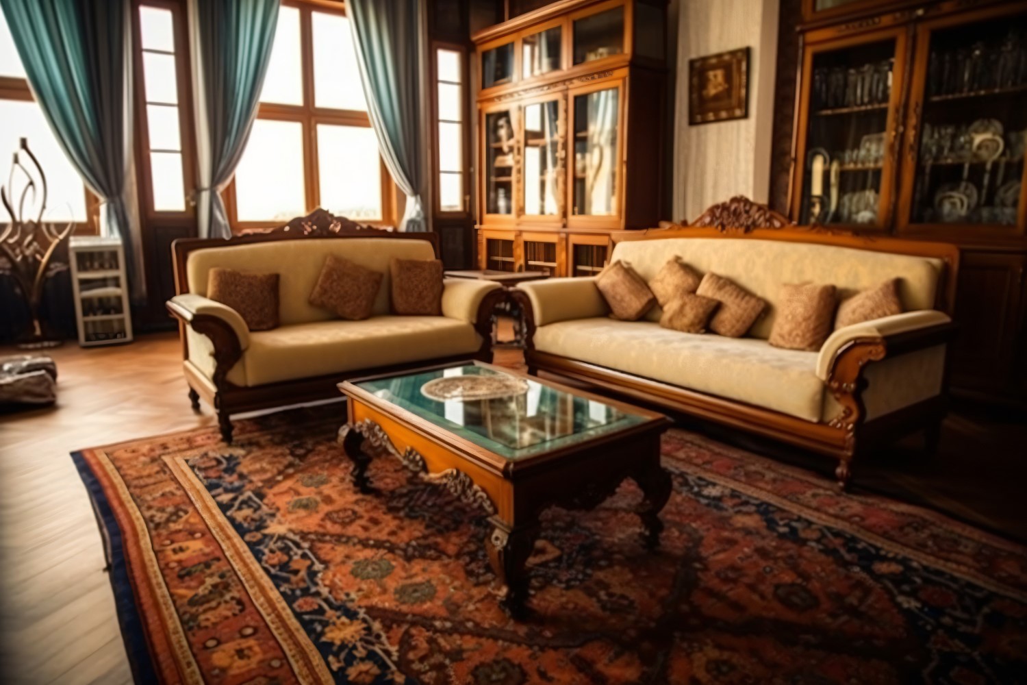 Furniture in the Italian living room is a testament to exquisite craftsmanship and timeless elegance. Plush, sumptuous sofas and armchairs invite you to sit and savour the moment, while ornate wooden coffee tables and sideboards adorned with intricate carvings become the focal points of the room. Upholstery often features rich fabrics like velvet, and the colour palette is a harmonious fusion of warm earthy tones and inviting neutrals.