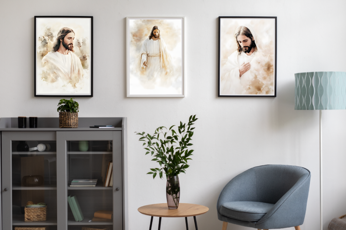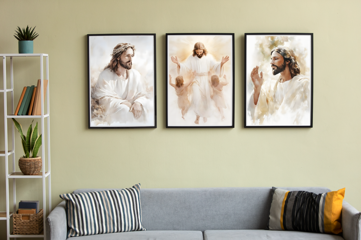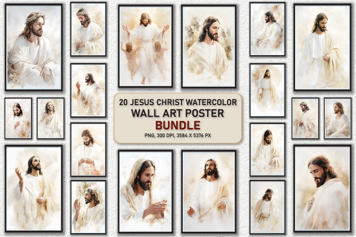 Jesus Christ Watercolor Wall Art Poster Bundle Illustration