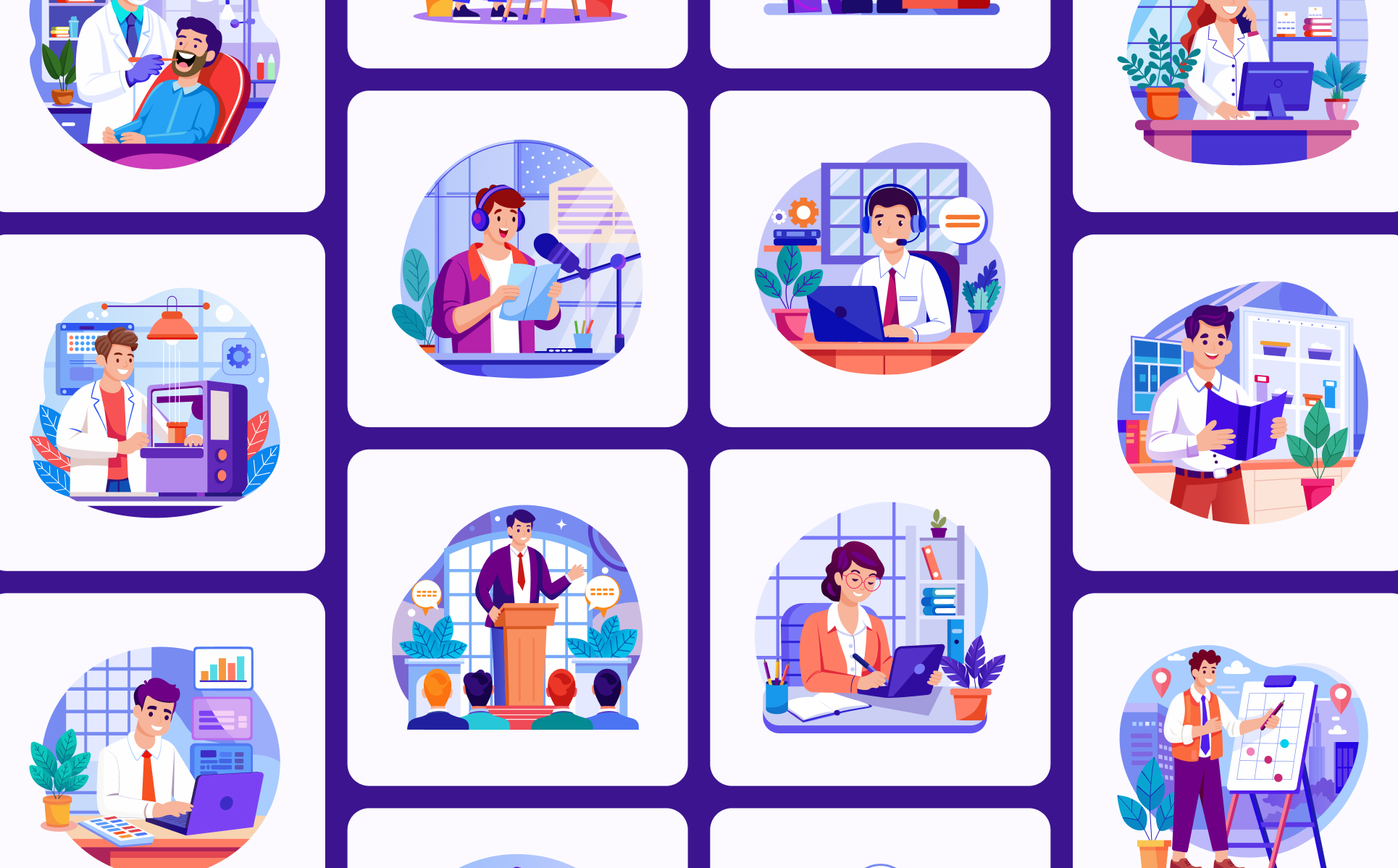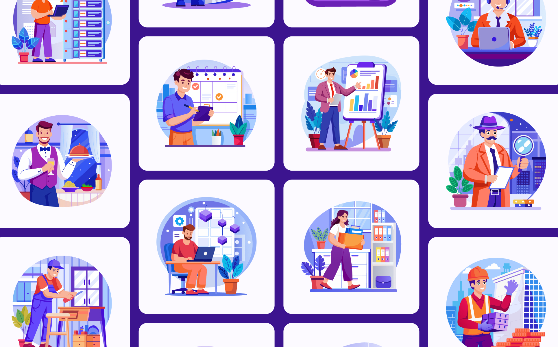 Step into the world of work with our Job Illustrations Art Set A modern, minimal, and realistic collection celebrating the diversity of professions. From doctors healing lives to teachers shaping minds and mechanics fixing dreams, each illustration captures the essence of dedication and skill. Perfect for branding, storytelling, or digital visuals, wherever you want to showcase the beauty of everyday work.