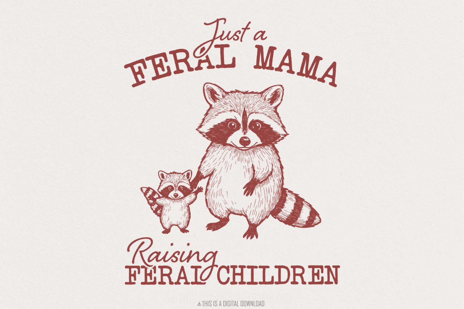 Just A Feral Mama Raising Feral Children PNG, Funny Mom PNG, Sarcastic Mom, Raccoon Mom, Feral Raccoon, Funny Motherhood, Adult Humor PNG