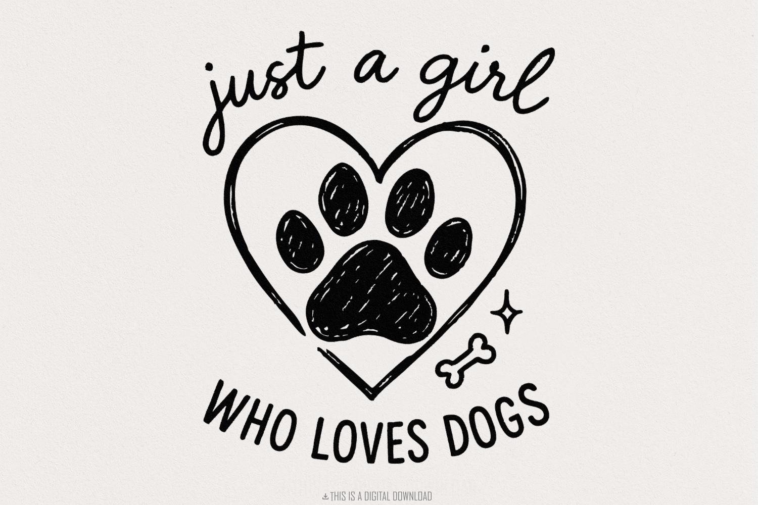 Just a Girl Who Loves Dogs PNG, Dog Lover Digital Design, Heart Paw Print Art, Cute Printable Shirt PNG, Pet Gift for Her, Animal SVG