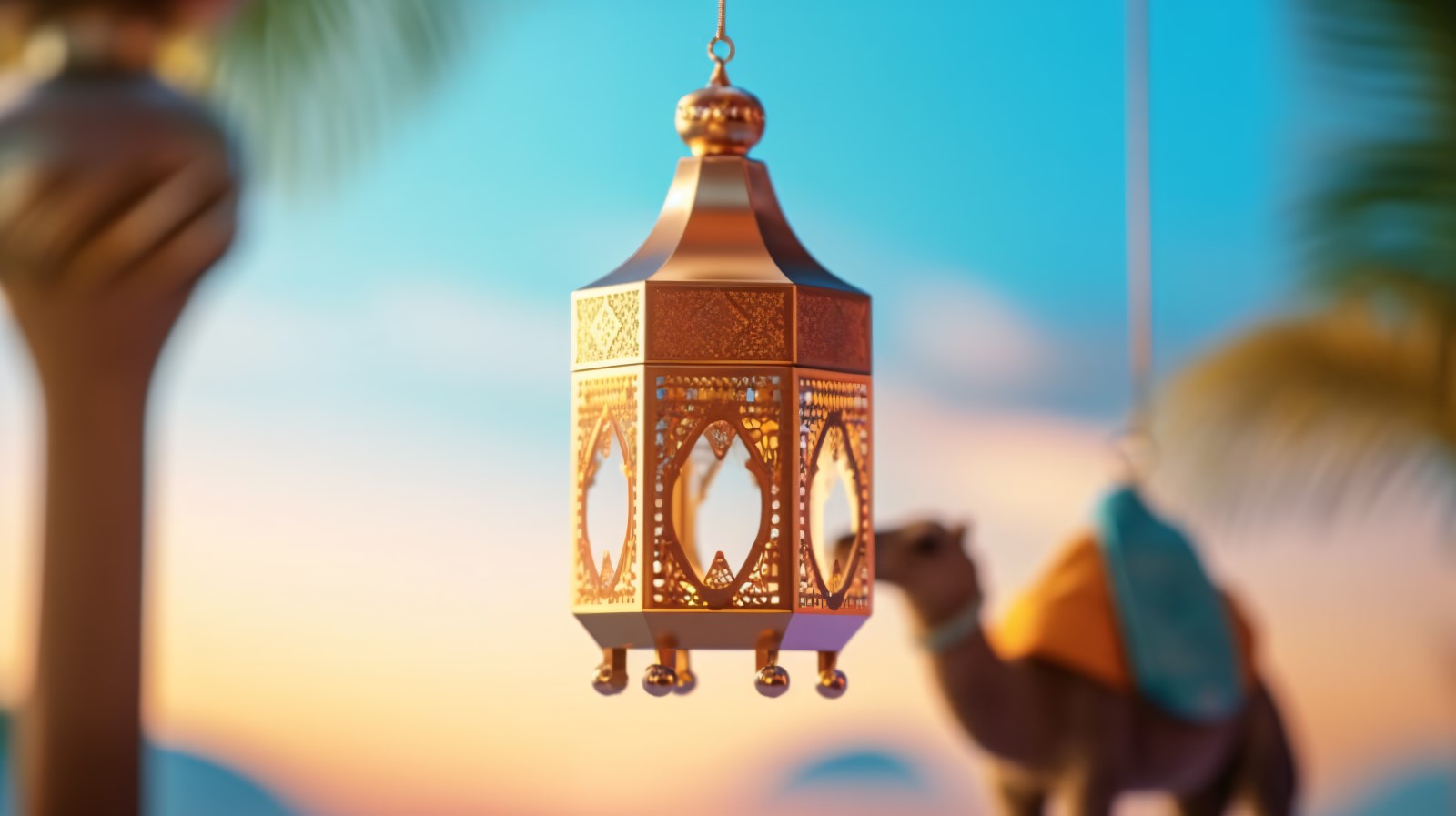 lantern Islamic art, Camel on desert with mosque 04 Illustration