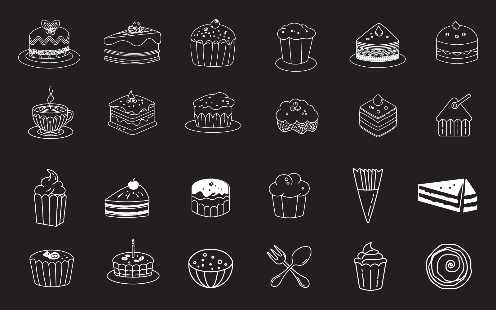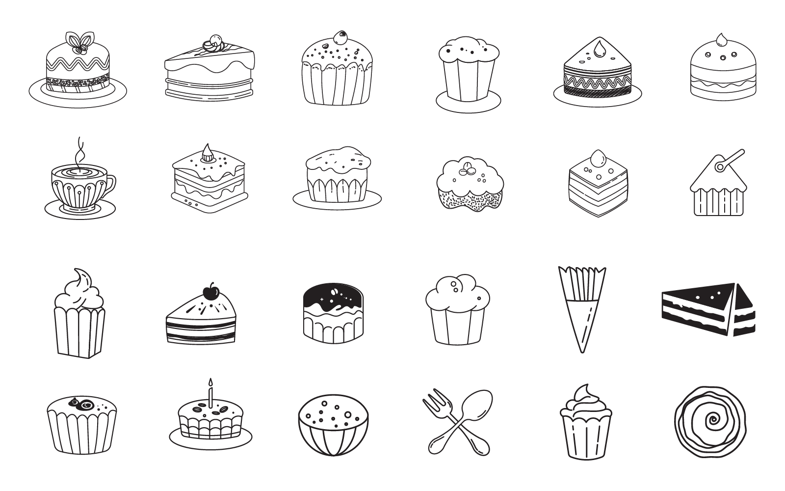 Line art vector design with cute doodles of cakes cupcakes design template