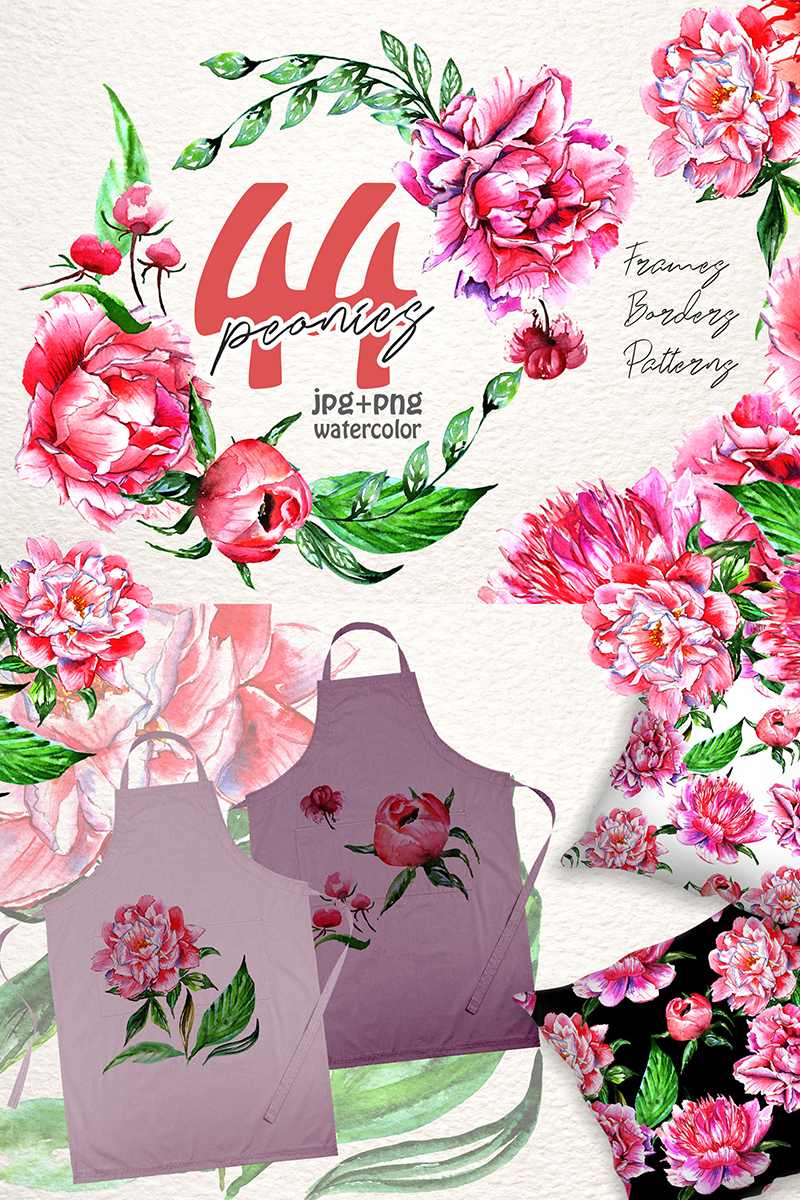 Lovely pink peony PNG watercolor setWildflower pink peony watercolor set of 44 files. Ideal material for DIY, wedding invitations, greeting cards, quotes, blogs, posters and more.