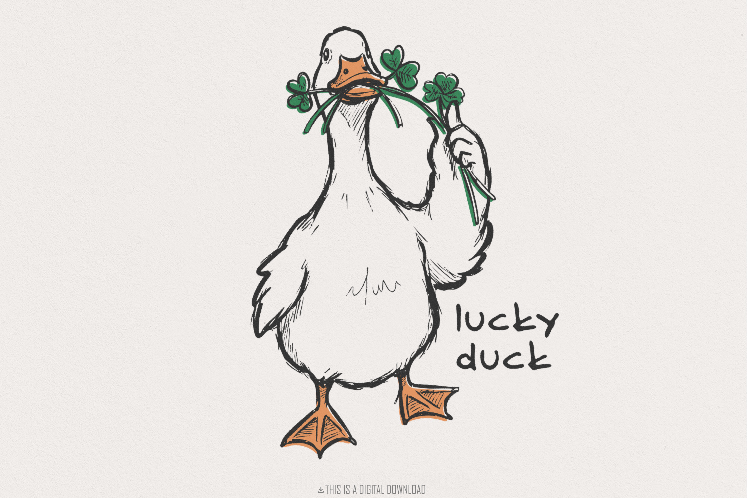 Lucky Duck PNG Sublimation, St Patricks Day Digital Download, Feeling Lucky Vintage PNG, Shamrock Illustration