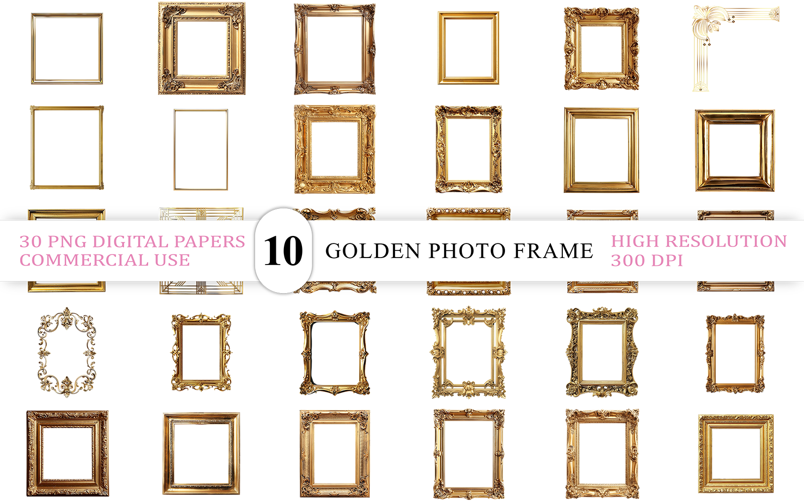 ✔ 30 Unique Elegant Golden Photo Frame PNG Digital Paper