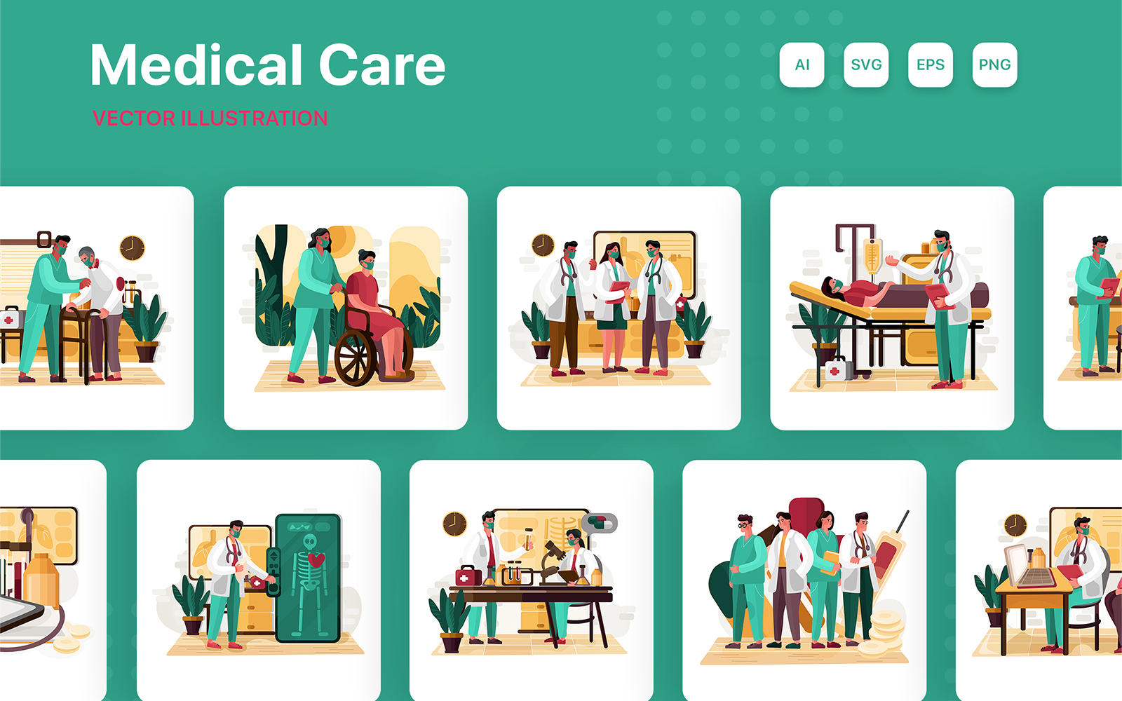 Can be easily resized and change colors of every shape as required. You could also combine different elements and create your own illustrations.