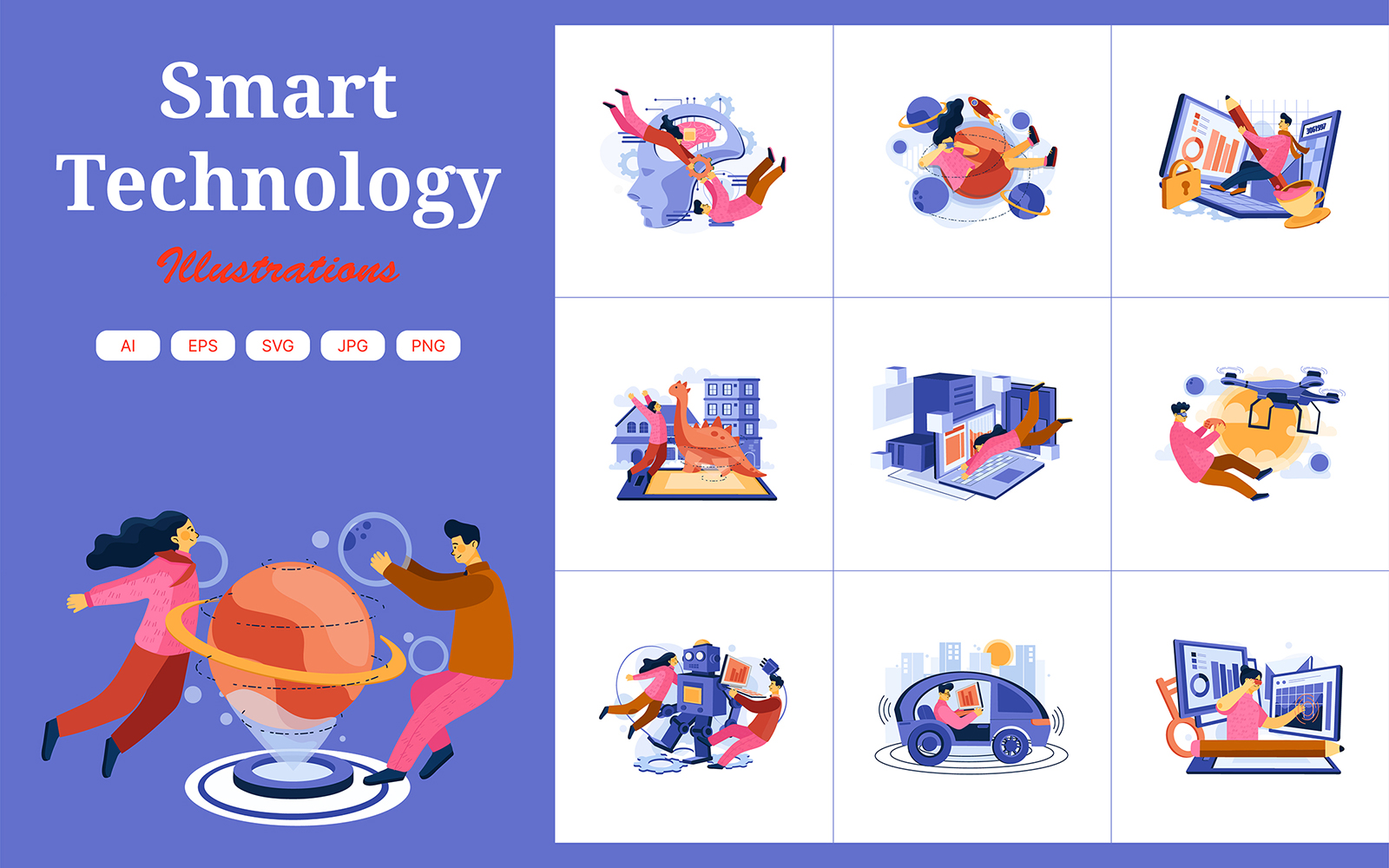 Can be easily resized and change colors of every shape as required, You could also combine different elements and create your own illustrations.