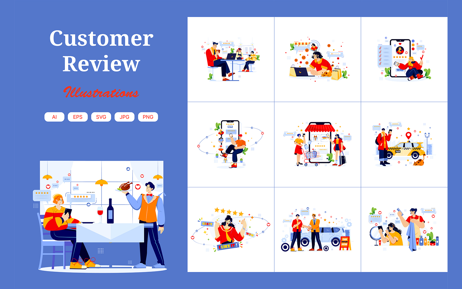 Can be easily resized and change colors of every shape as required. You could also combine different elements and create your own illustrations.
