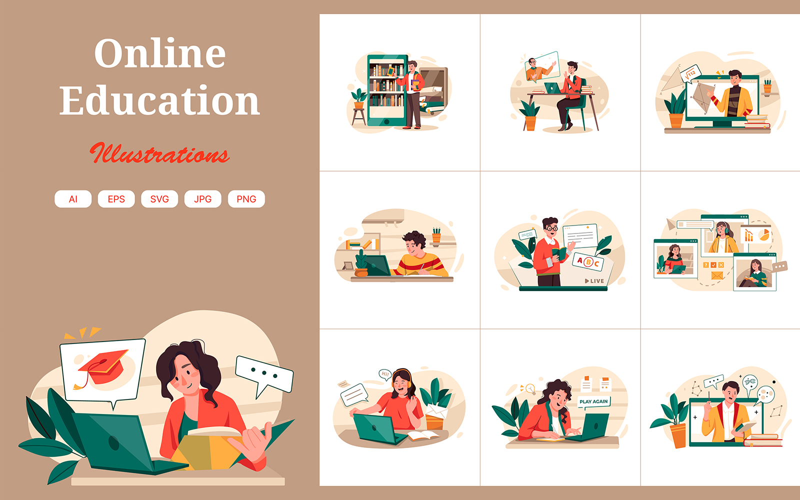 Can be easily resized and change colors of every shape as required. You could also combine different elements and create your own illustrations.