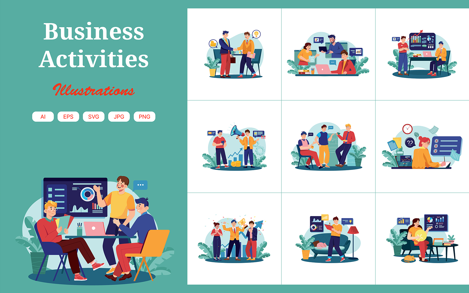 Can be easily resized and change colors of every shape as required. You could also combine different elements and create your own illustrations.