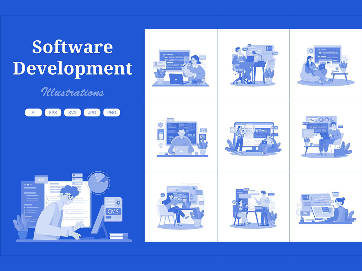Can be easily resized and change colors of every shape as required, You could also combine different elements and create your own illustrations.