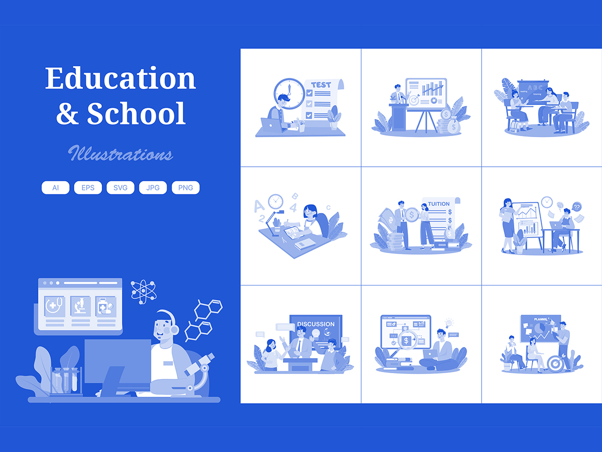Can be easily resized and change colors of every shape as required, You could also combine different elements and create your own illustrations.