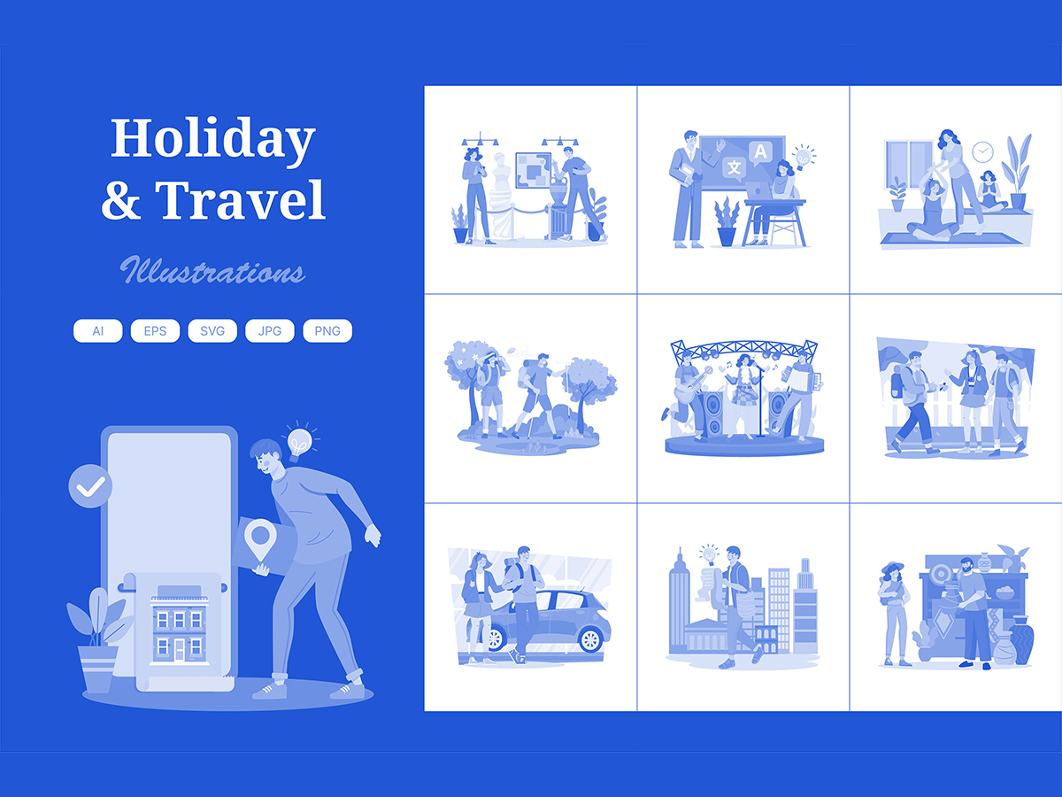 Can be easily resized and change colors of every shape as required, You could also combine different elements and create your own illustrations.