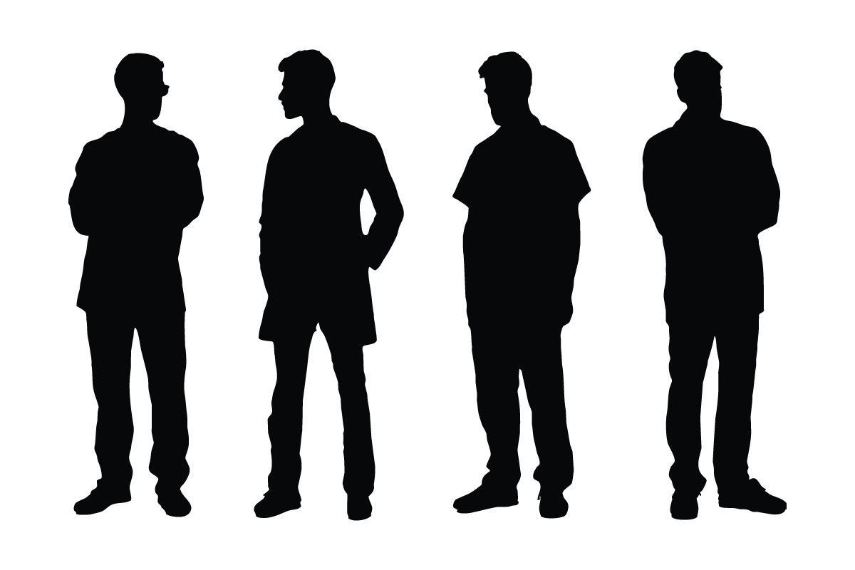 Male doctors standing silhouette vector. Man physician wearing aprons and standing silhouette bundles. Scientist boys with anonymous faces. Male doctor and surgeon silhouette collection. Male doctor silhouette on a white background.