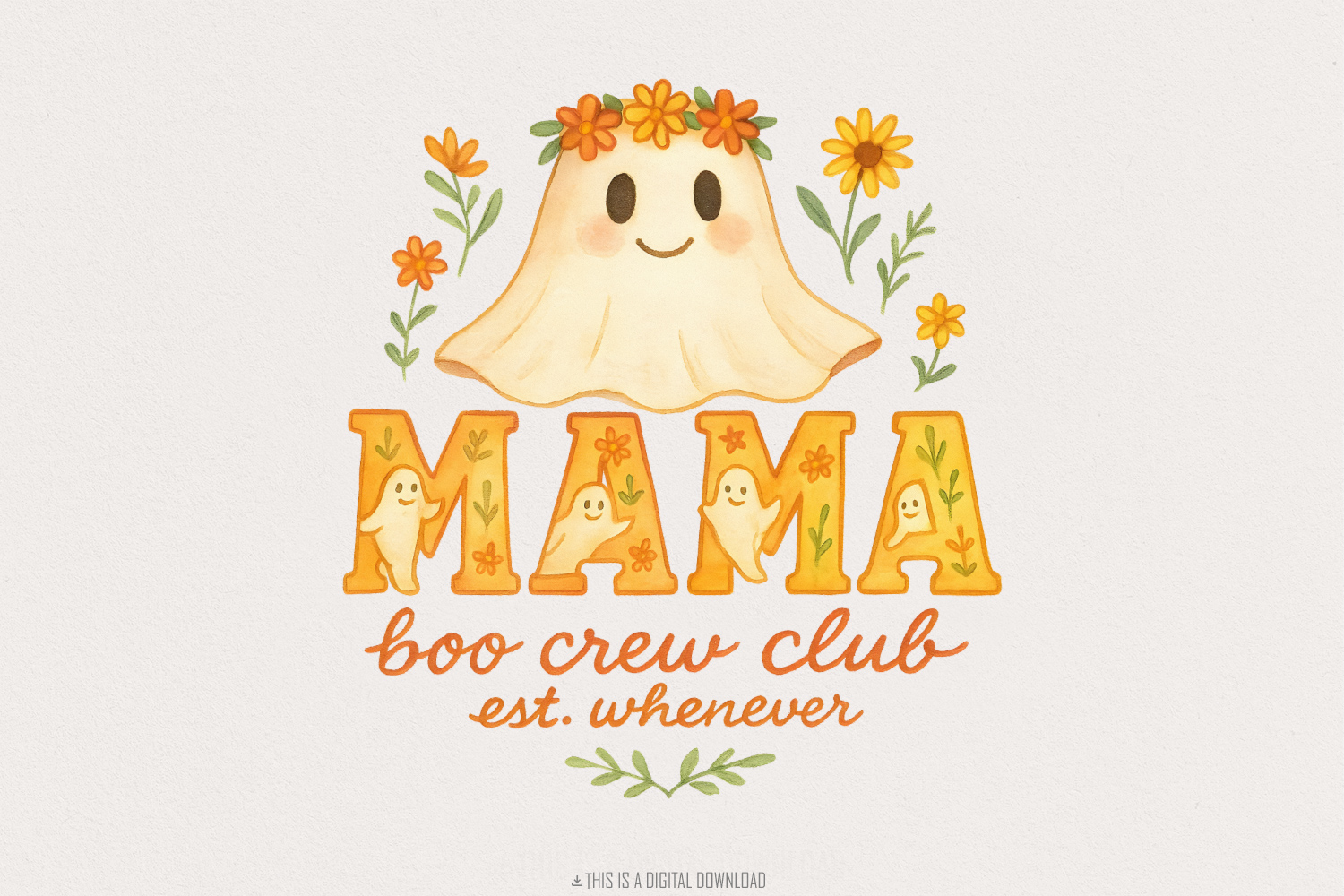 Mama Boo Crew Club PNG, Cute Ghost Mama PNG, Spooky Halloween Floral Shirt Design, Family Boo Crew, Fall Flowers, Digital Download PNG