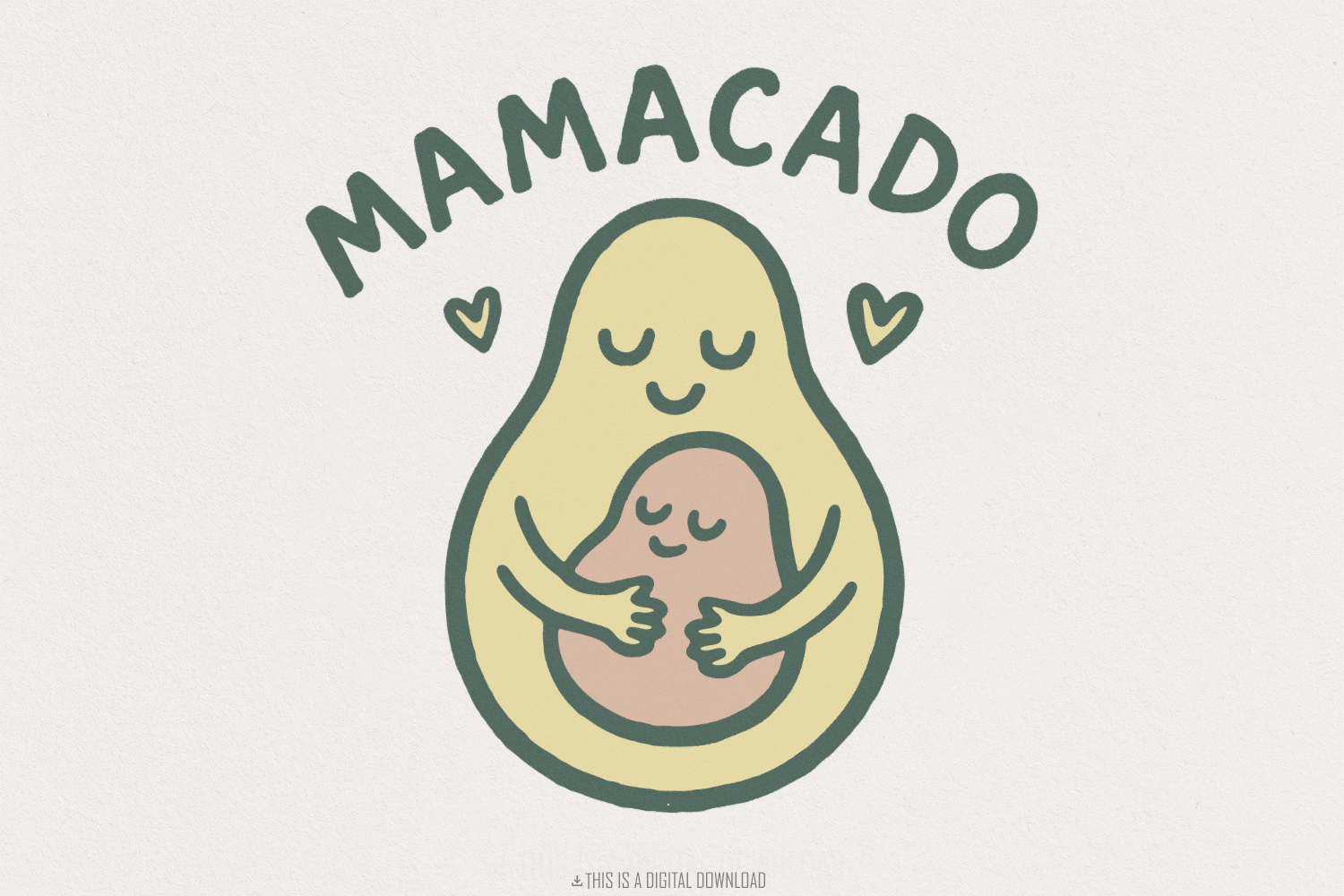Mamacado PNG, Cute Avocado Mom and Baby Digital Download, Motherhood Sublimation, Pregnancy Illustration