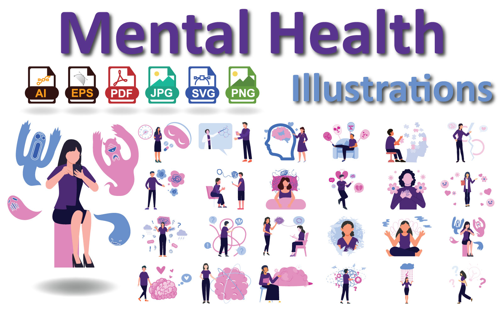 Discover a powerful collection of mental health awareness digital illustrations designed to foster a positive impact on emotional well-being. These creative resources are ideal for mental health initiatives, wellness blogs, social media campaigns, self-care content, or any project aimed at promoting mindfulness and mental well-being. Each illustration is carefully crafted to convey a message of self-compassion, resilience, and emotional support. Whether you're building a platform for mental health education or creating a campaign to inspire others, these visuals will help you raise awareness and encourage meaningful conversations around mental health. Elevate your content with professional, thoughtful artwork that resonates with individuals seeking empowerment, balance, and healing. Perfect for creatives, wellness advocates, and anyone committed to supporting mental health through art.