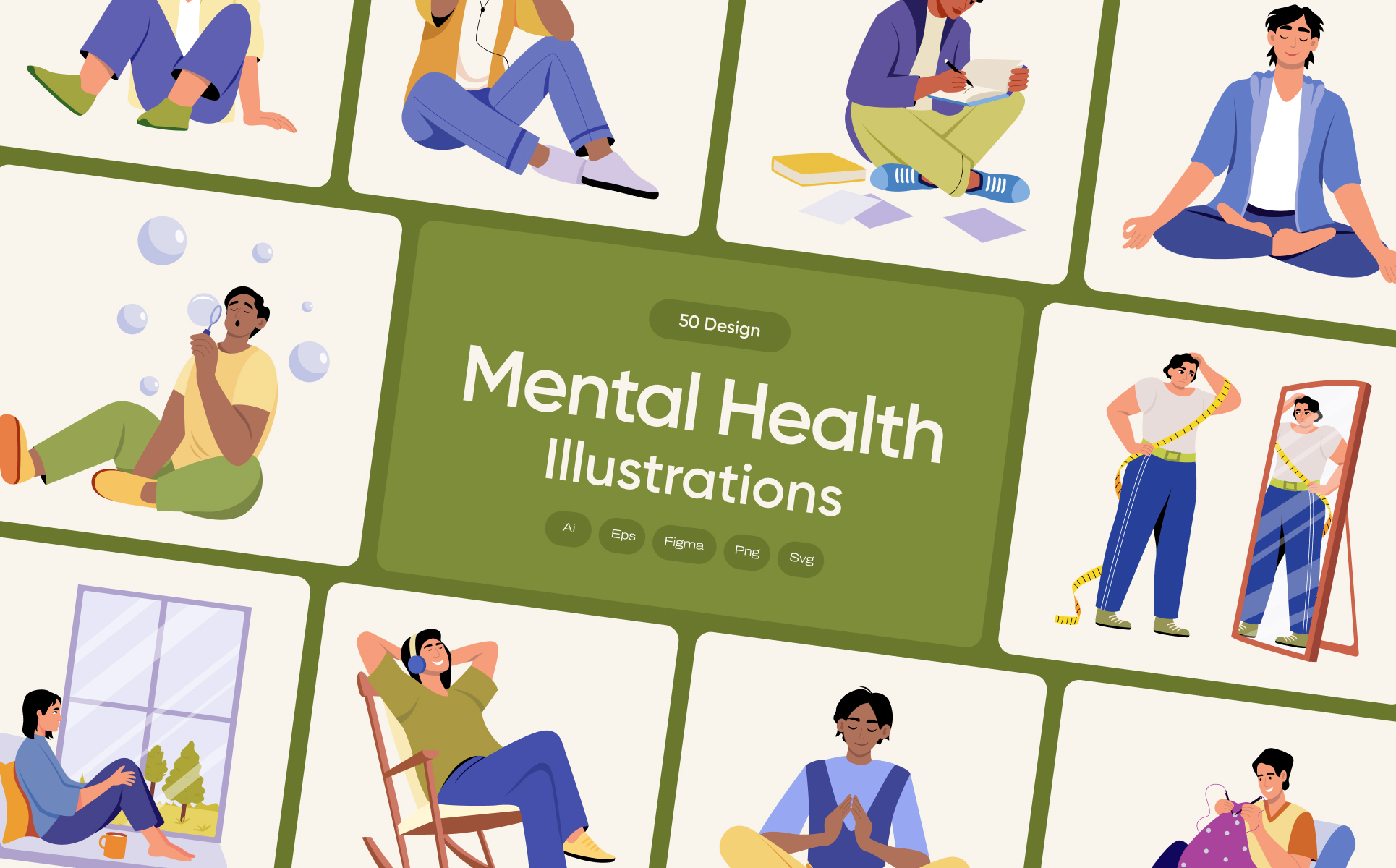 Brighten up conversations around emotional well-being with this Mental Health Illustration Set. These thoughtful illustrations cover themes like depression, therapy, stress relief, and positive affirmations. Ideal for mental health campaigns, blogs, posters, apps, and social media, this collection is designed to help you spread awareness and compassion with style. Whether you're a designer, therapist, or content creator, these assets will help you connect through meaningful design.