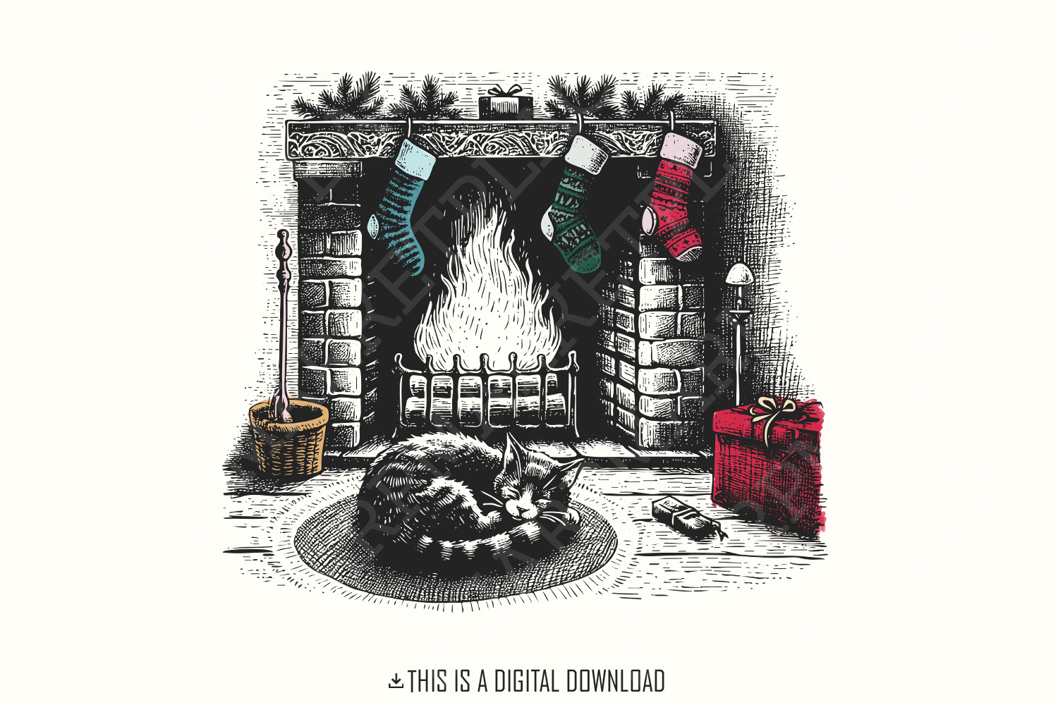 Meowy Christmas Png, Funny Christmas Png, Christmas Cat Png, Cat Lover, Retro Holiday Png, Vintage Illustration