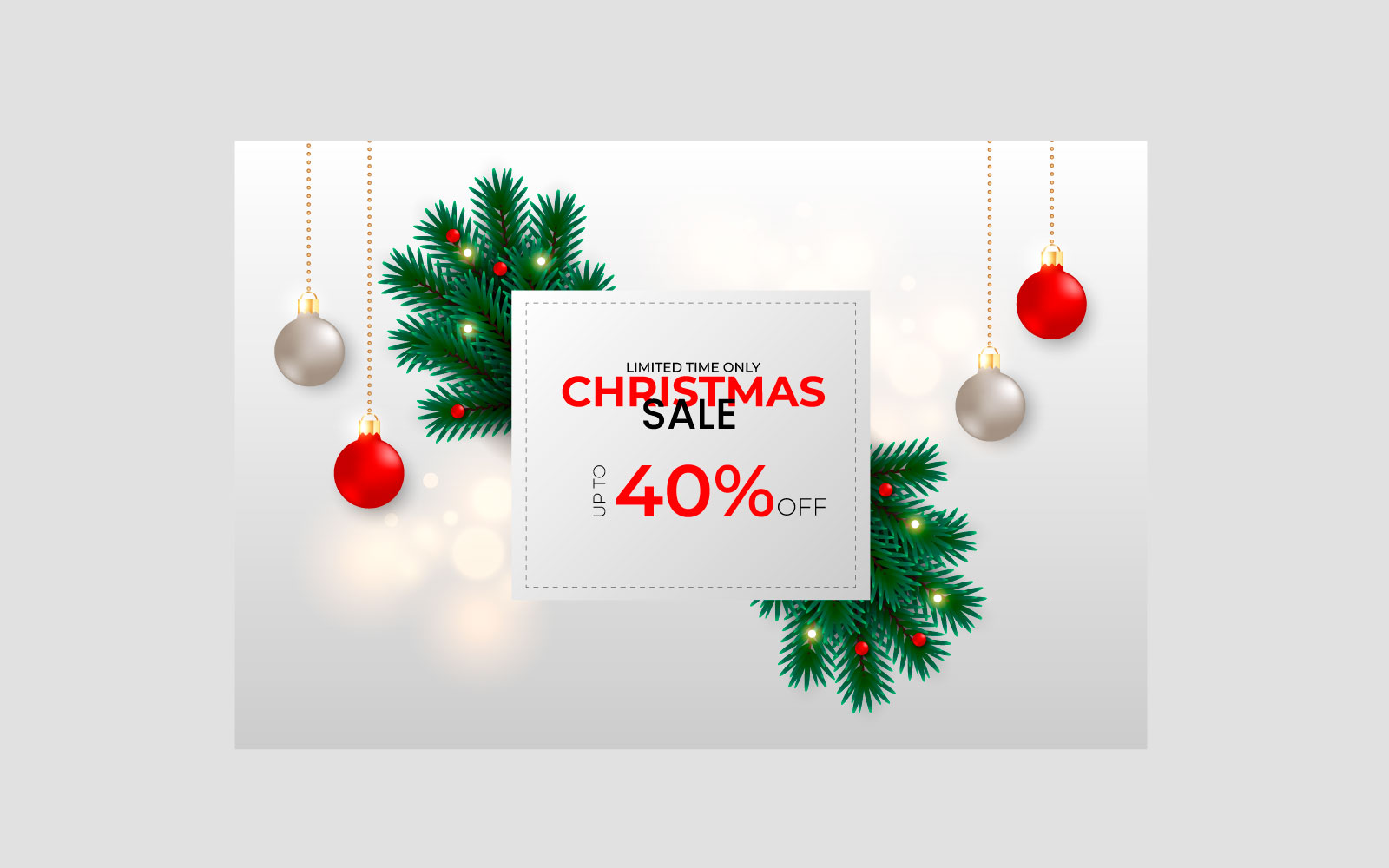 Merry Christmas sale post decoration with christmas ball pine branch and star style Illustration