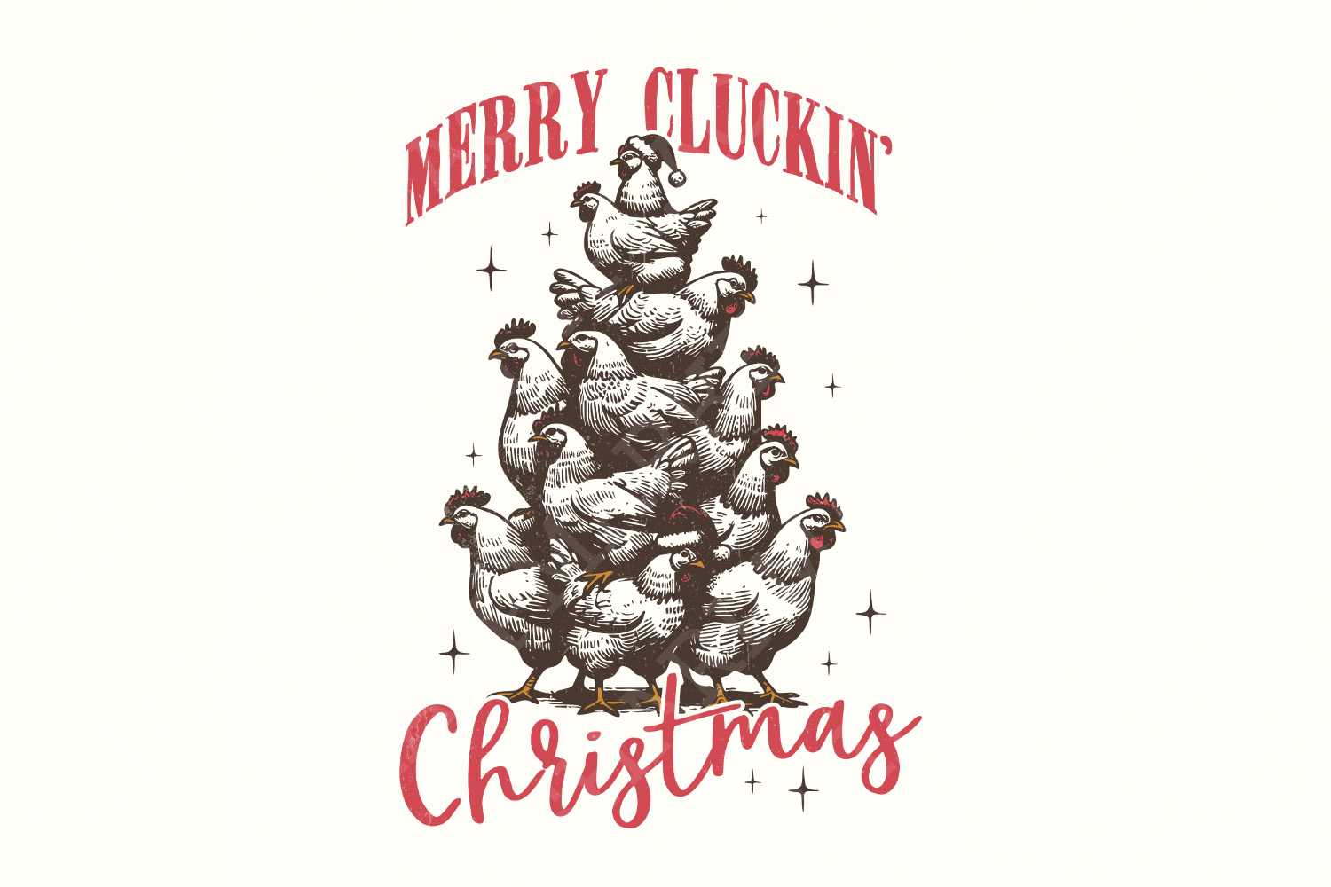 Merry Cluckin' Christmas Png, Christmas Farmhouse Png, Funny Christmas Chickens Png, Christmas Illustration