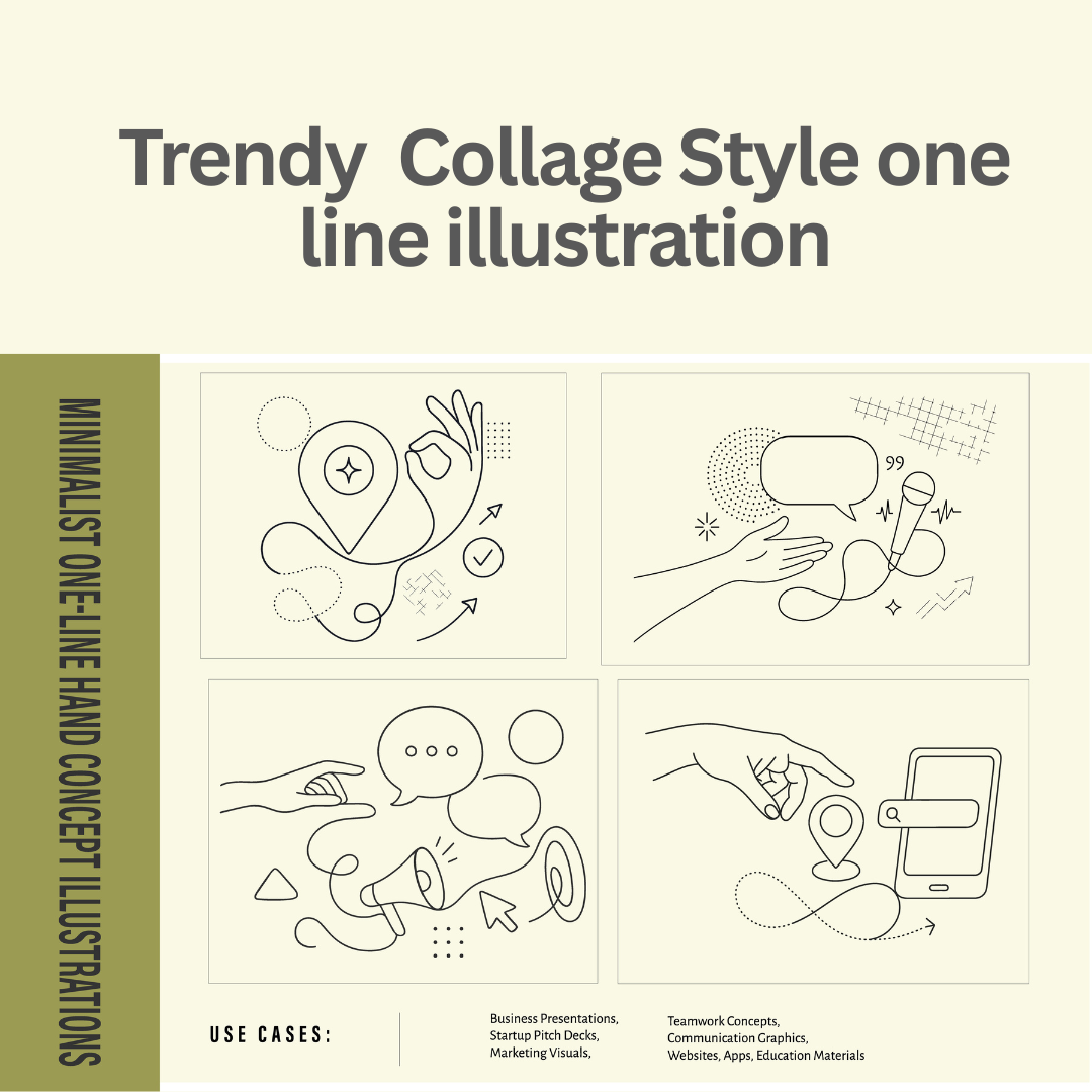 Minimalist One-Line Communication, Location & Marketing collage Style Vector Illustration Pack