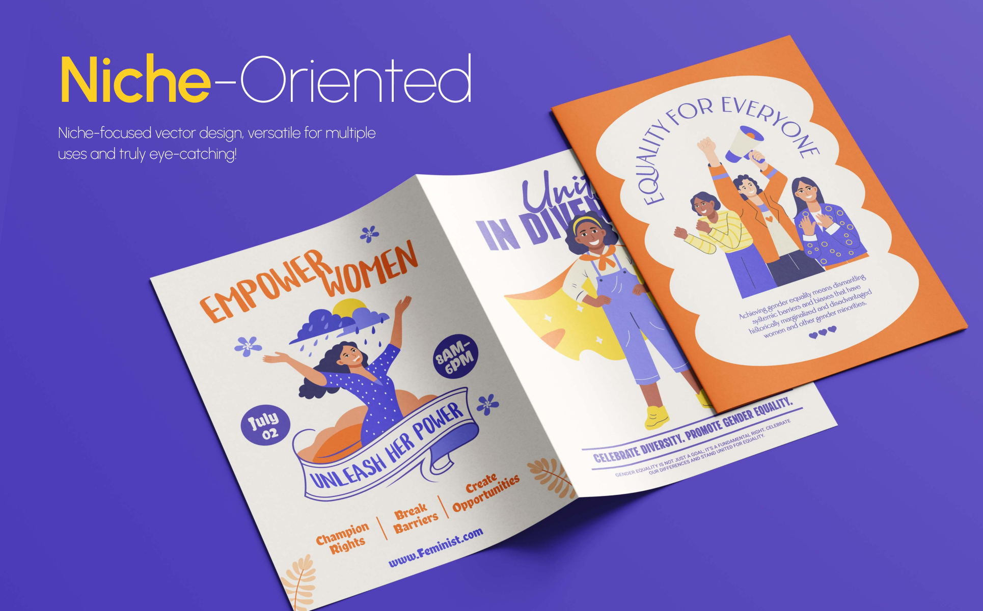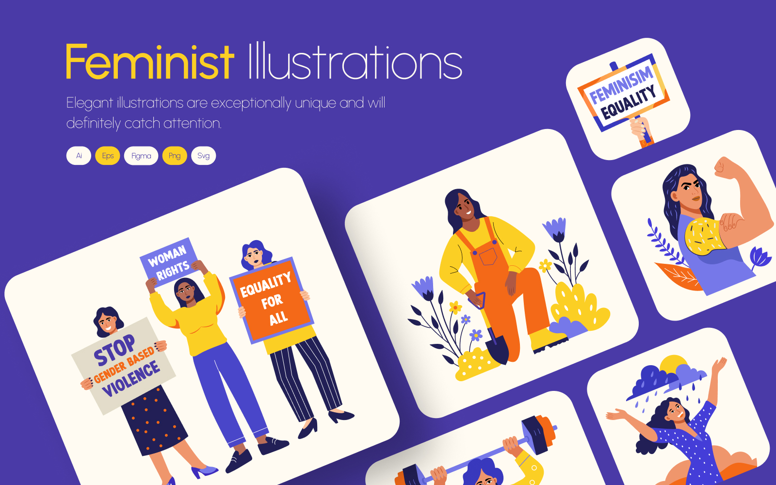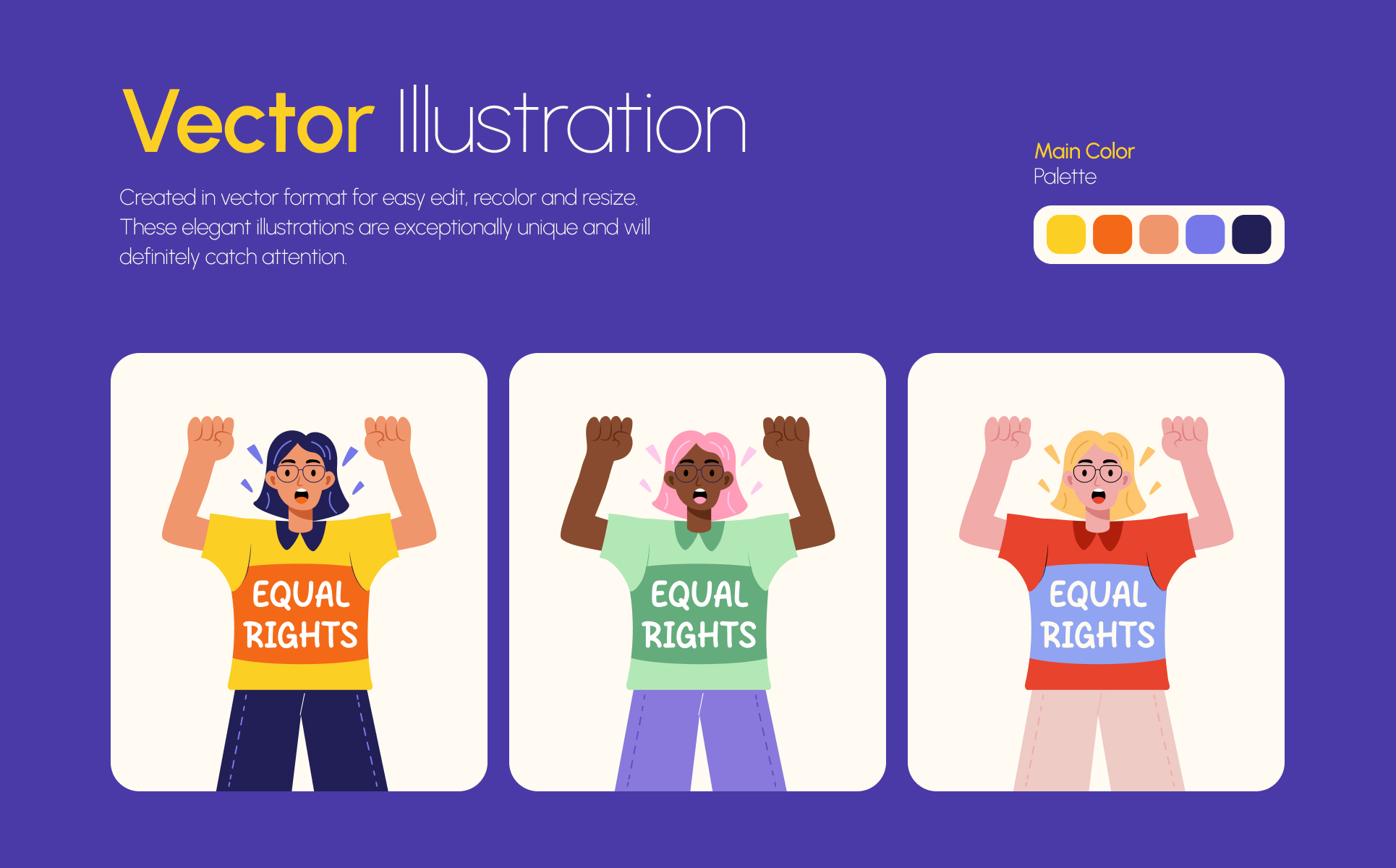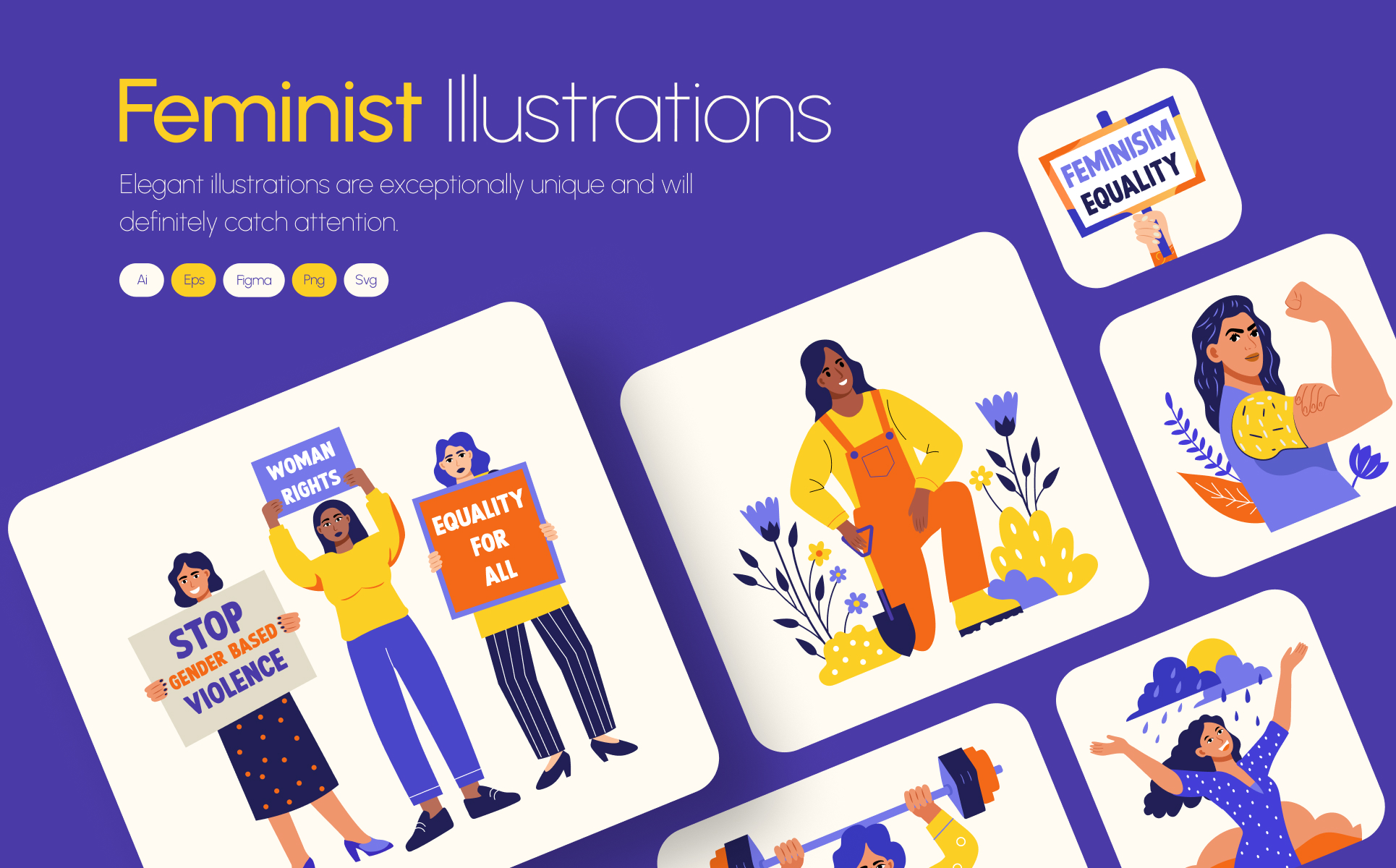 Celebrate strength, equality, and empowerment with this feminist icons illustration set! These thoughtfully designed icons represent women's rights, leadership, and unity, making them perfect for activism, branding, and creative projects. Whether you're designing for Women's Day, social campaigns, or educational materials, these bold and inspiring illustrations will add a powerful and meaningful touch to your work. Use them to amplify voices, challenge stereotypes, and advocate for change through impactful visuals.