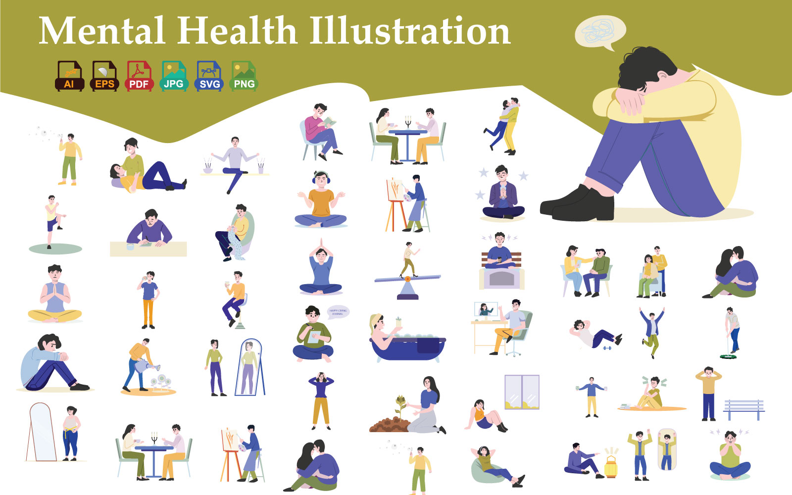 Whether used for social media campaigns, blogs, websites, or educational materials, this design communicates empathy, calmness, and hope. Its soothing aesthetic and relatable theme make it a perfect fit for creative professionals and organizations aiming to spread awareness about psychological wellness, inner peace, and self-love.