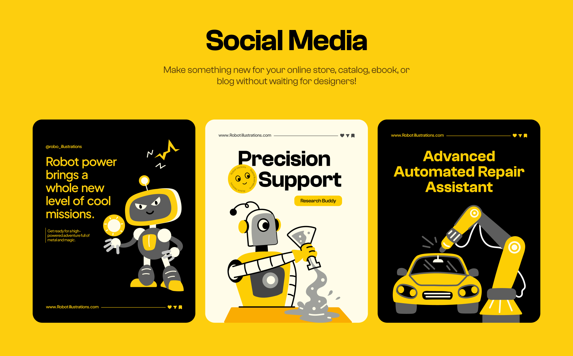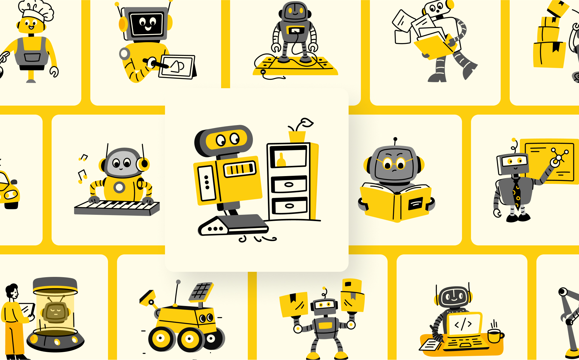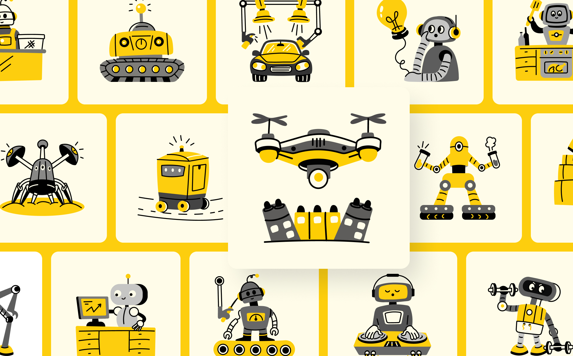 - Unique, quirky designs: A playful collection of robot art for every project.