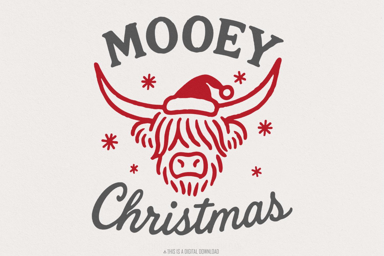 Mooey Christmas PNG, Highland Cow Christmas PNG, Christmas Cow Download, Funny Farmhouse Holiday Illustration