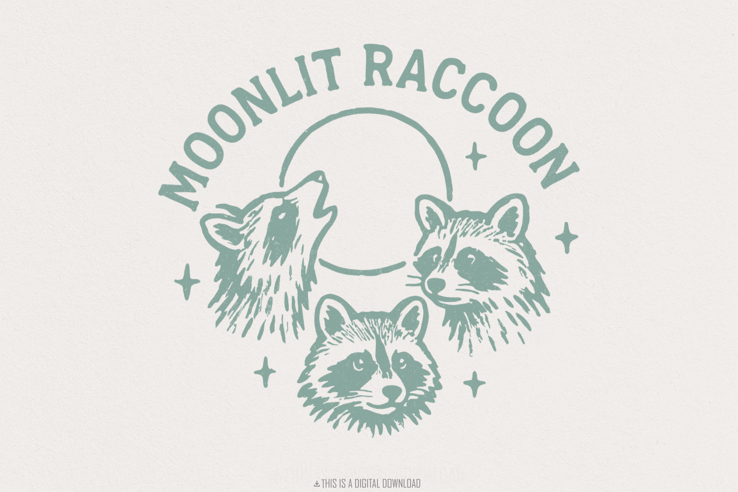 Moonlit Raccoon PNG, Woodland Animals Clipart, Raccoon PNG Art, Forest Animals Illustration, Moon and Stars, Celestial Design, Digital PNG File