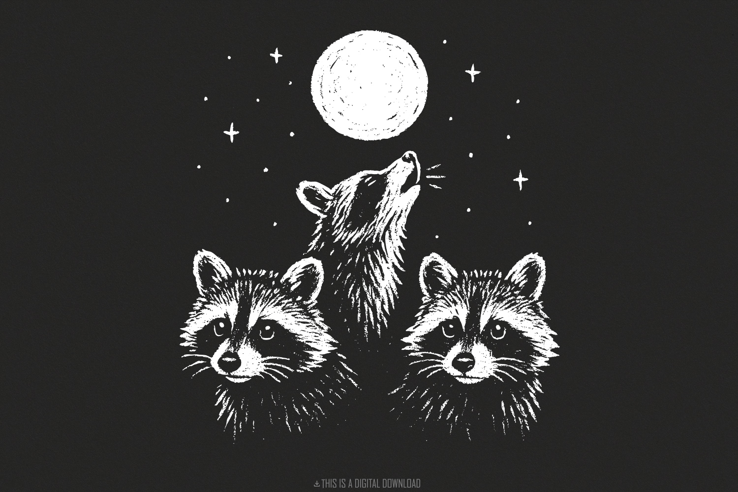 Moonlit Raccoon Trio PNG, Woodland Animal PNG, Forest Animal PNG, Hand Drawn Wildlife, Nocturnal Nature Art, Boho Star Night, Instant Digital Download
