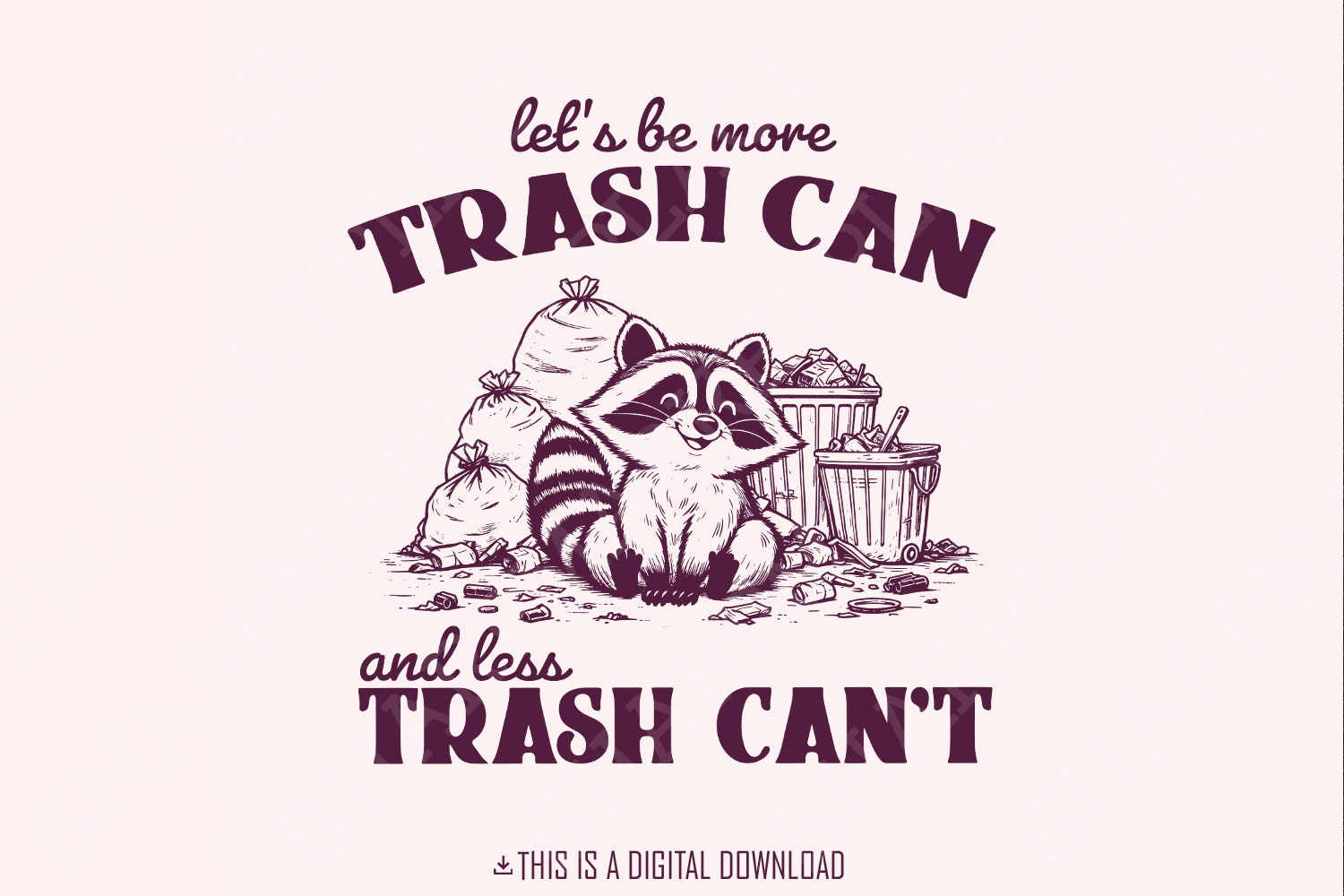 More Trash Can Less Trash Can't Funny Racoon PNG, Trash Panda PNG, Cute Racoon Digital Download Illustration