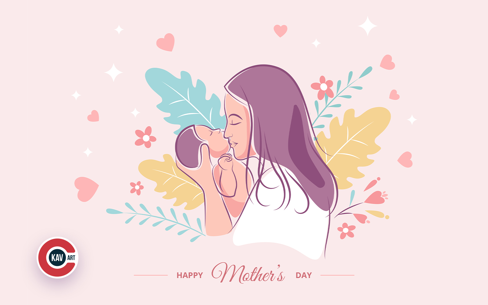 Mother Holding Baby in Arms. Happy Mothers Day Illustration