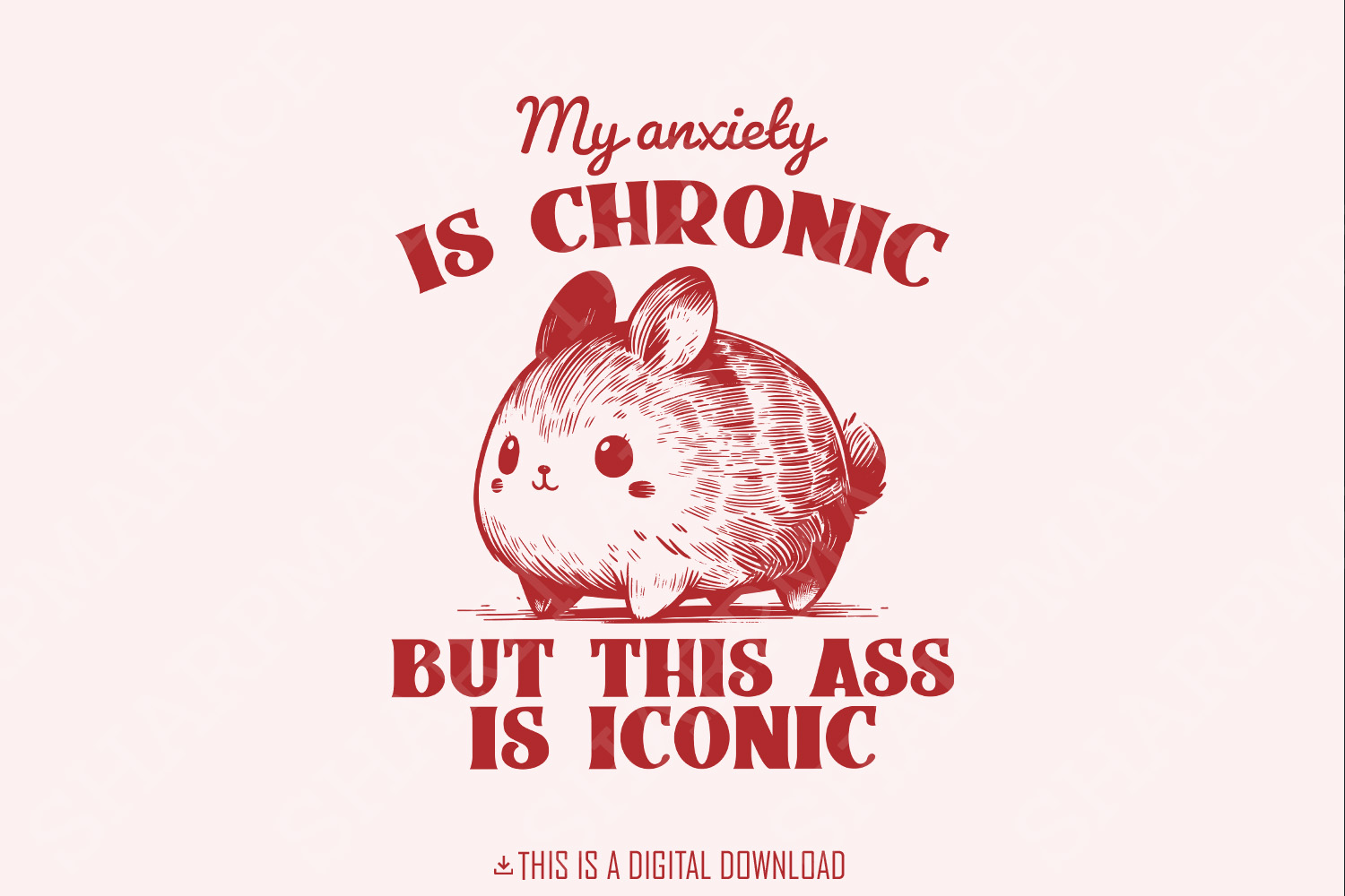 My Anxiety is Chronic But This Ass Is Iconic Funny Bunny Vintage Animal Sayings Instant Download PNG Sublimation File