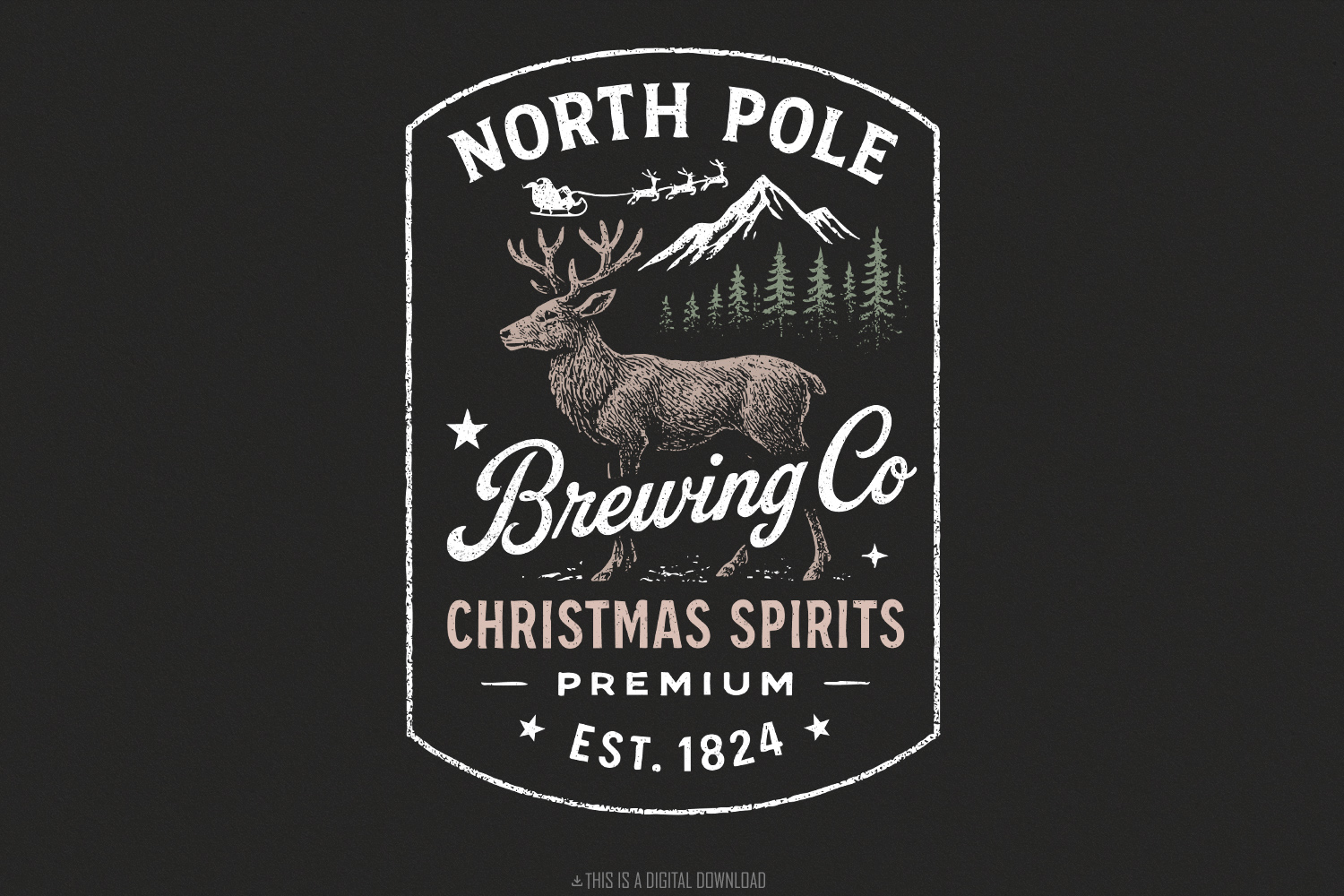 North Pole Brewing Co Christmas Spirits Premium PNG, Vintage Holiday Reindeer PNG, Retro Christmas Shirt Design, Winter Festive T-Shirt Art