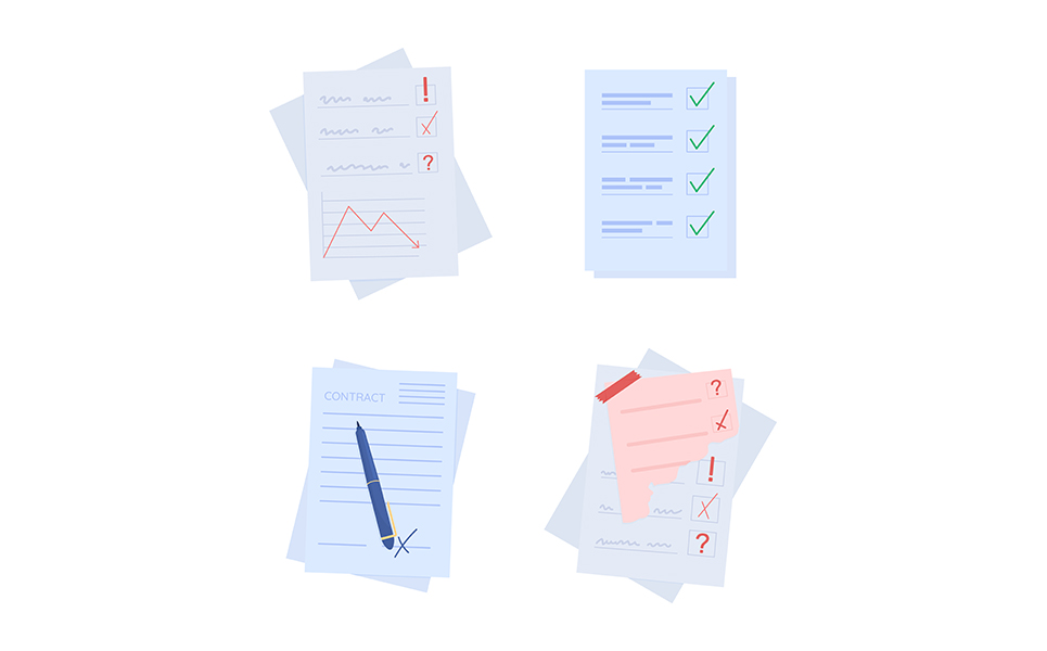 Notes on papers semi flat color vector object set. Writing tasks. Realistic item on white. Lifestyle isolated modern cartoon style illustration for graphic design and animation collection .